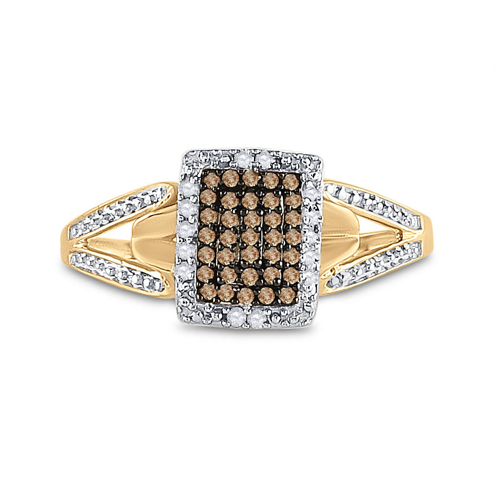 10K Yellow Gold Womens Round Brown Diamond Cluster Ring 1/5 Cttw, Womens Size: 5-10