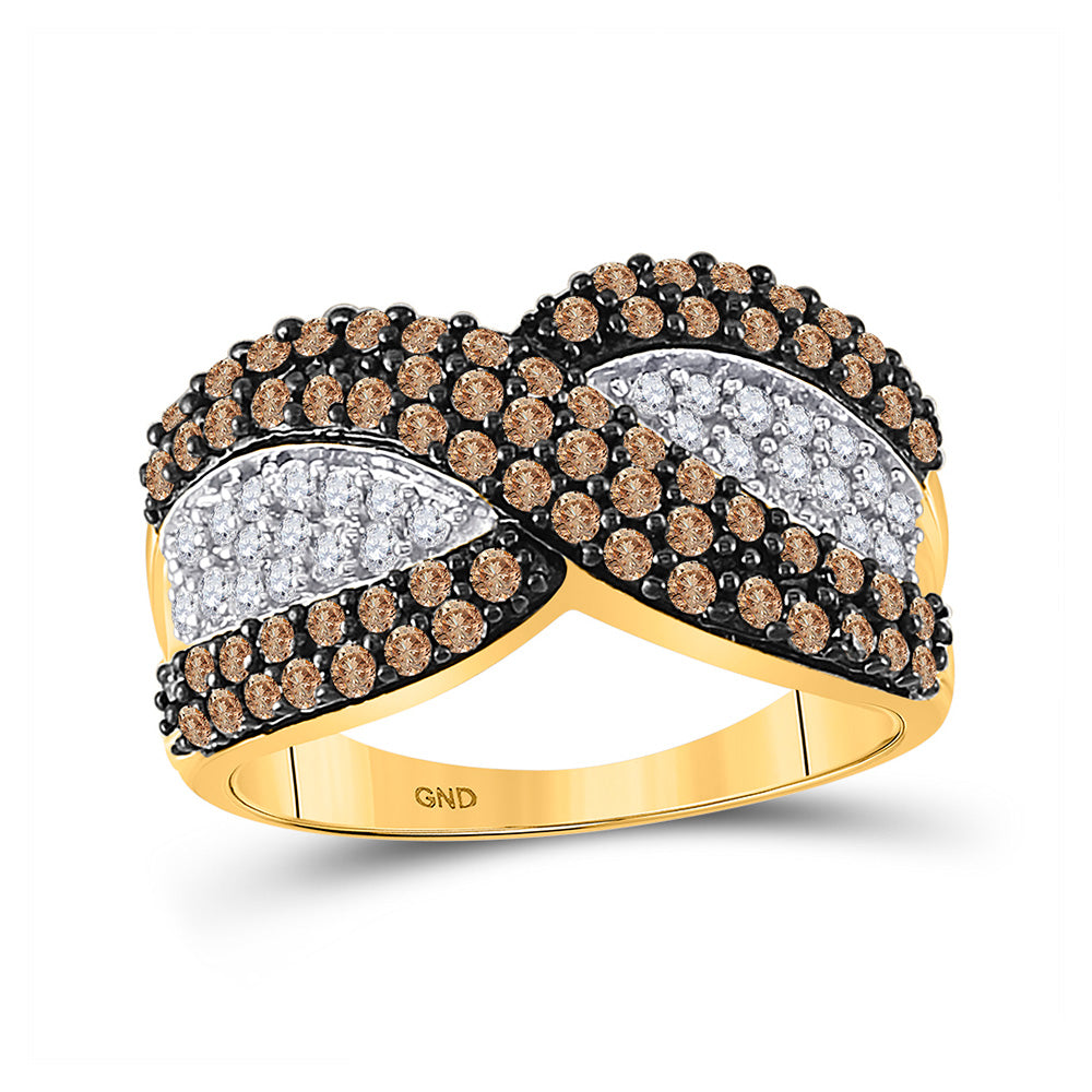 10K Yellow Gold Womens Round Brown Diamond Crossover Stripe Band Ring 1 Cttw, Womens Size: 5-10