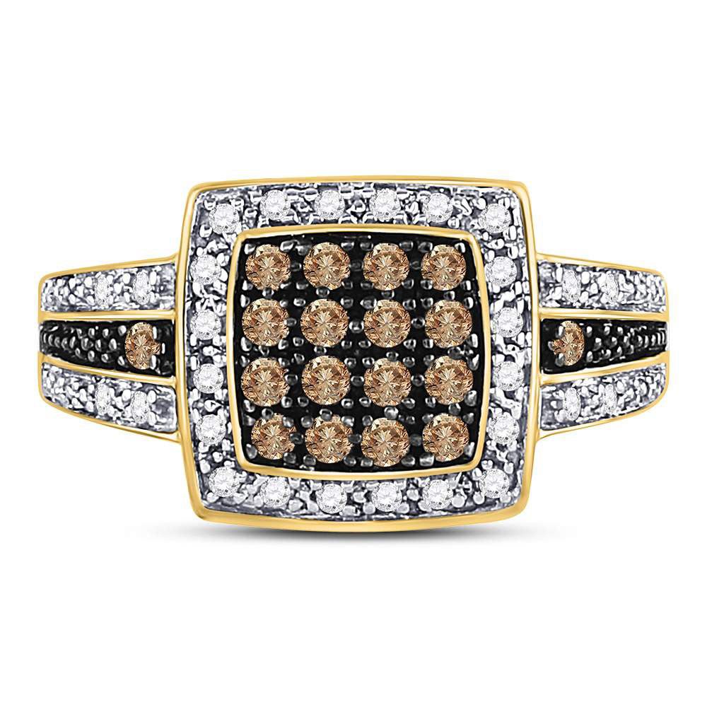 10K Yellow Gold Womens Round Brown Diamond Square Cluster Ring 1/2 Cttw, Womens Size: 5-10