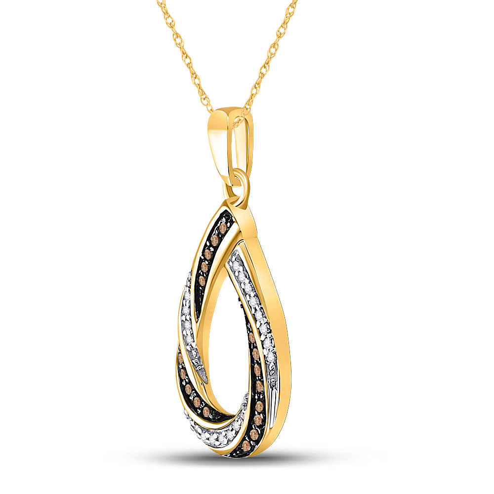 10K Yellow Gold Womens Round Brown Diamond Teardrop Stripe Pendant 1/4 Cttw, Length: 0.73 In, Width: 0.49 In