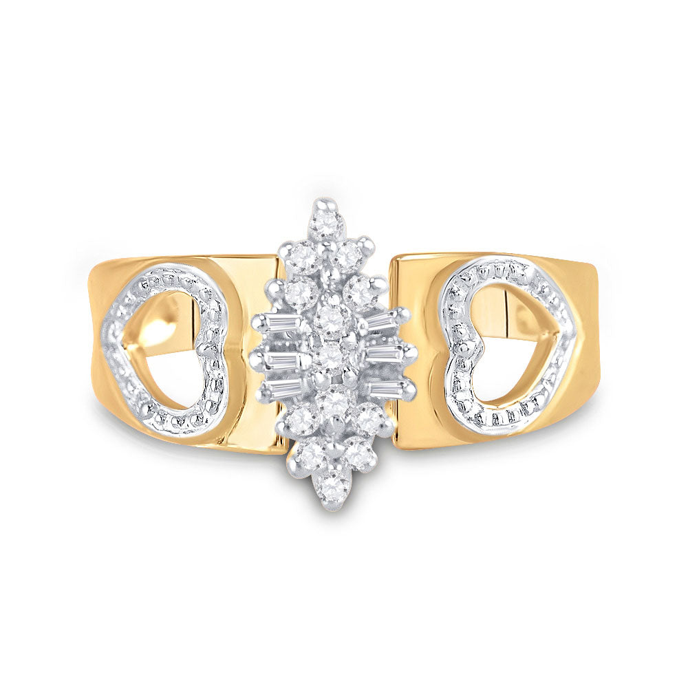 10K Yellow Gold Womens Round Diamond Double Heart Cluster Ring 1/8 Cttw, Womens Size: 5-10
