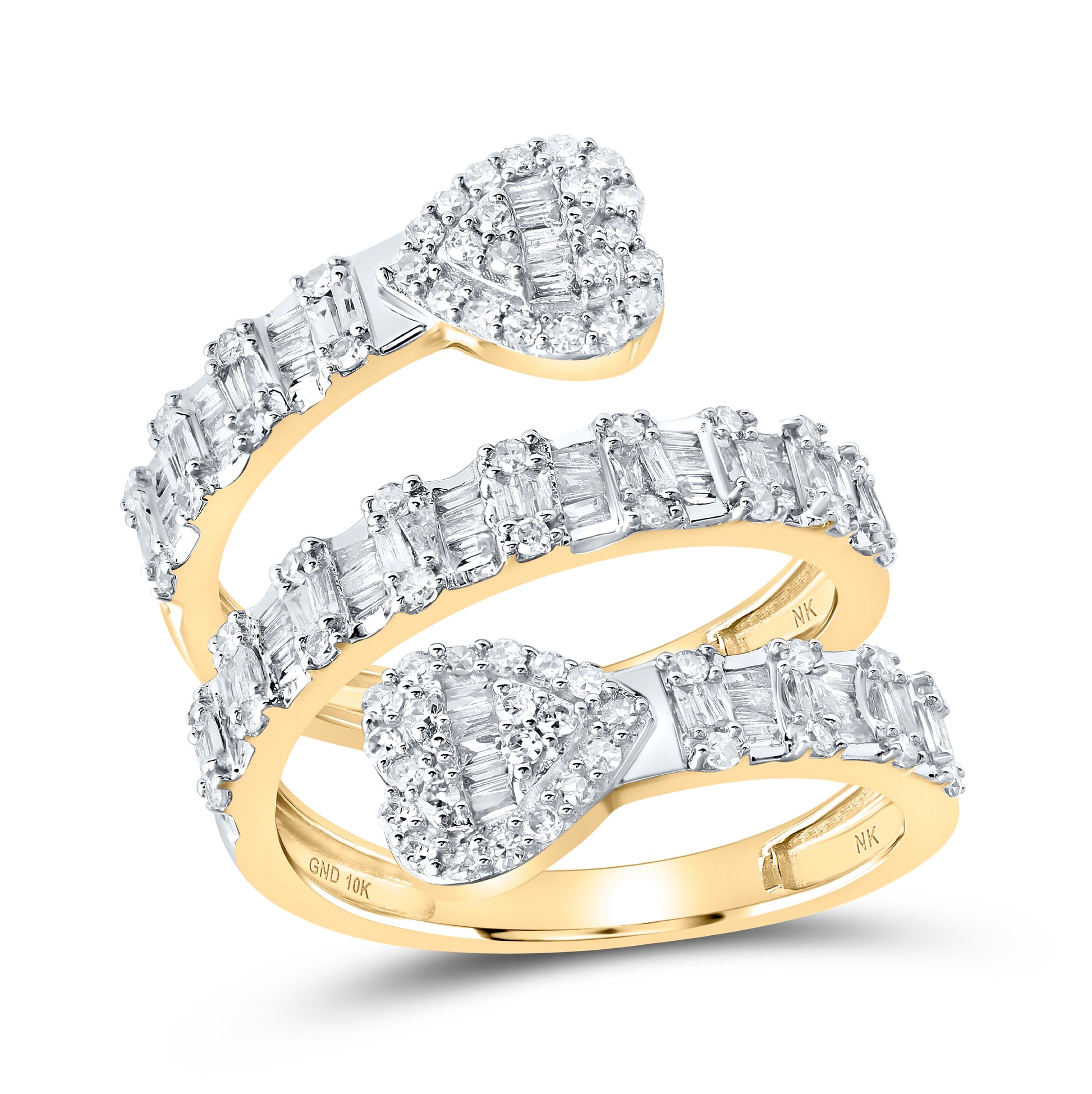 10K Yellow Gold Womens Round Diamond Heart Spiral Cuff Band Ring 1 Cttw, Womens Size: 5-10