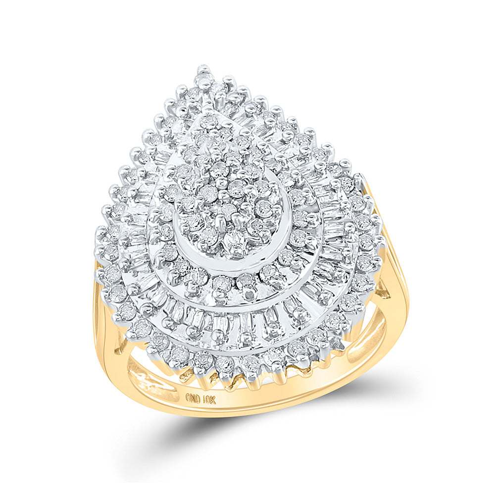 10K Yellow Gold Womens Round Diamond Teardrop Cluster Ring 7/8 Cttw, Womens Size: 5-10