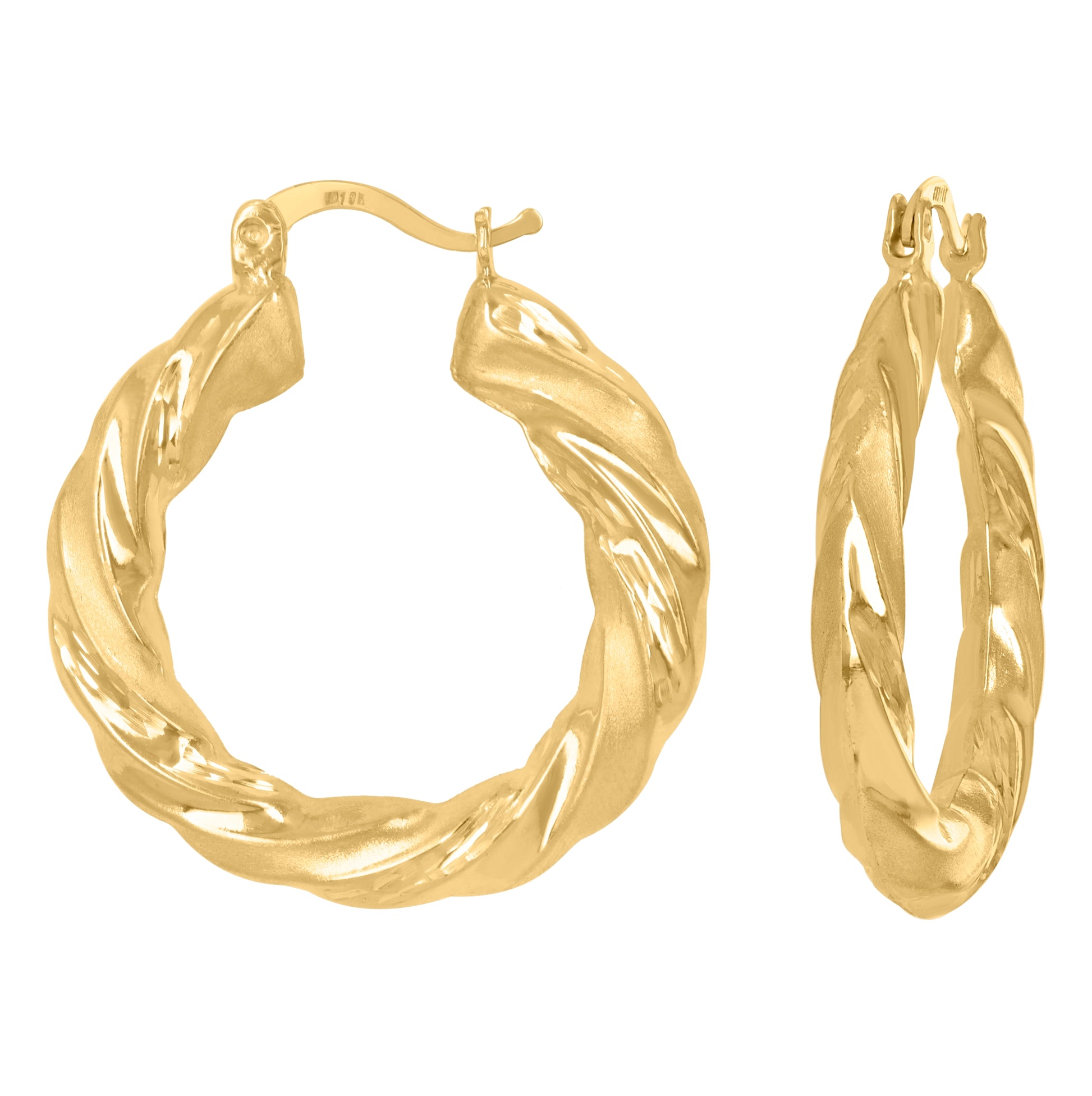 10K Yellow Gold Womens Twisted Hinged Hoops Huggies