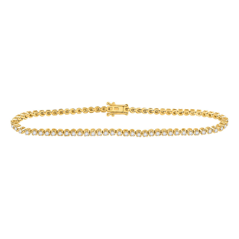 10K Yellow Or Rose Gold Womens Round Diamond Studded Tennis Bracelet