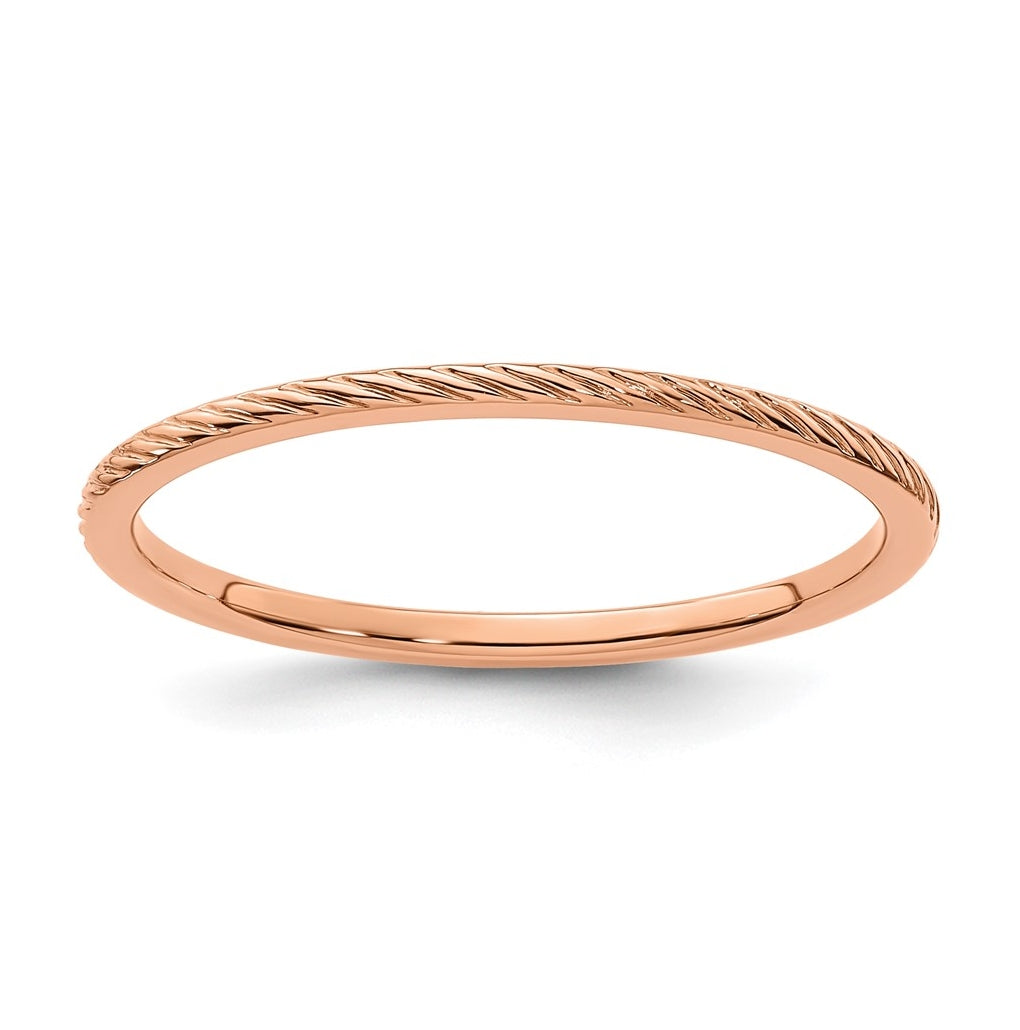 10k Yellow Or White Or Rose Gold 1.2mm Twisted Wire Pattern Stackable Band