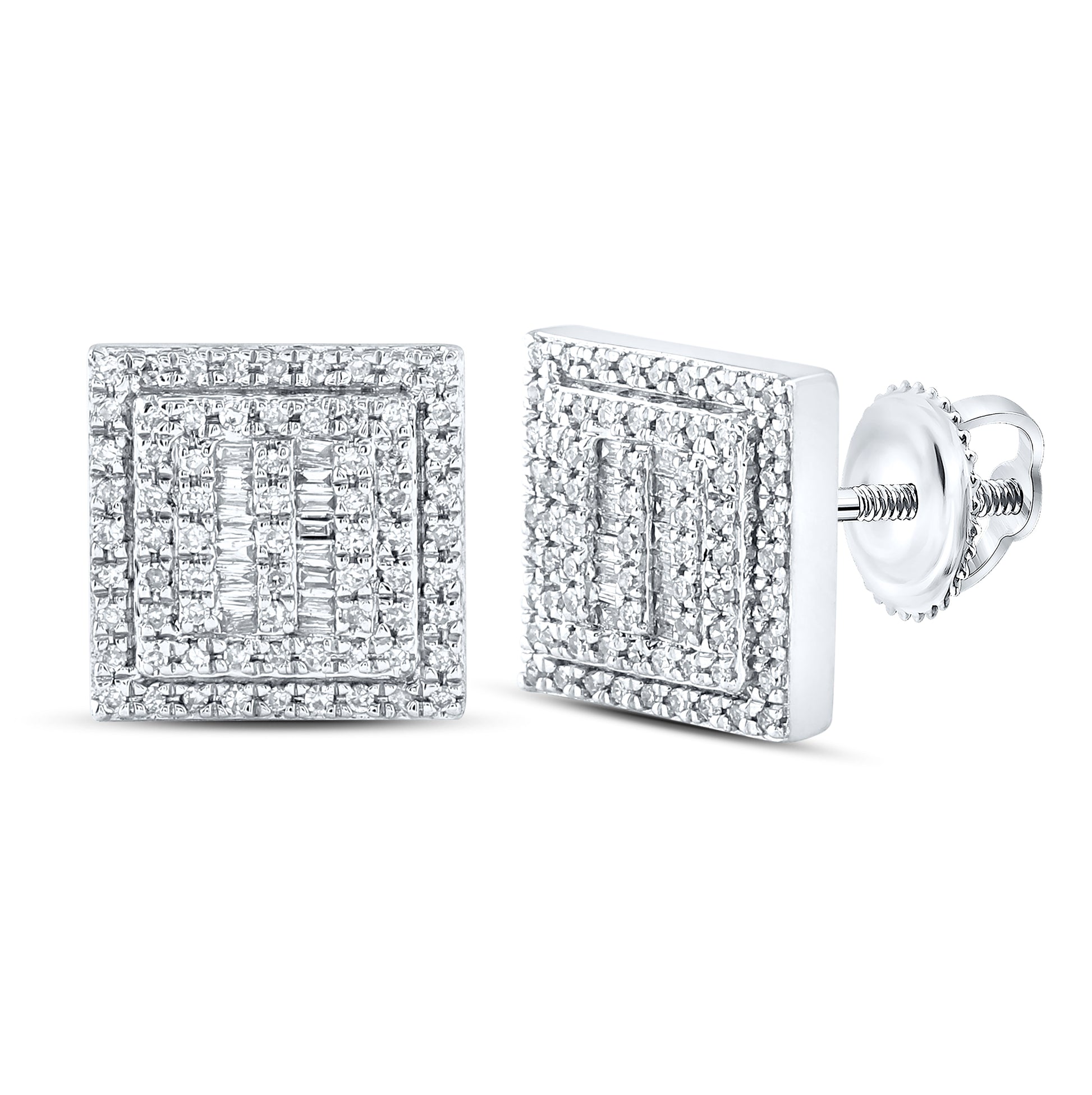 10K Yellow Or White Or Rose Gold Baguette Diamond Square Earrings