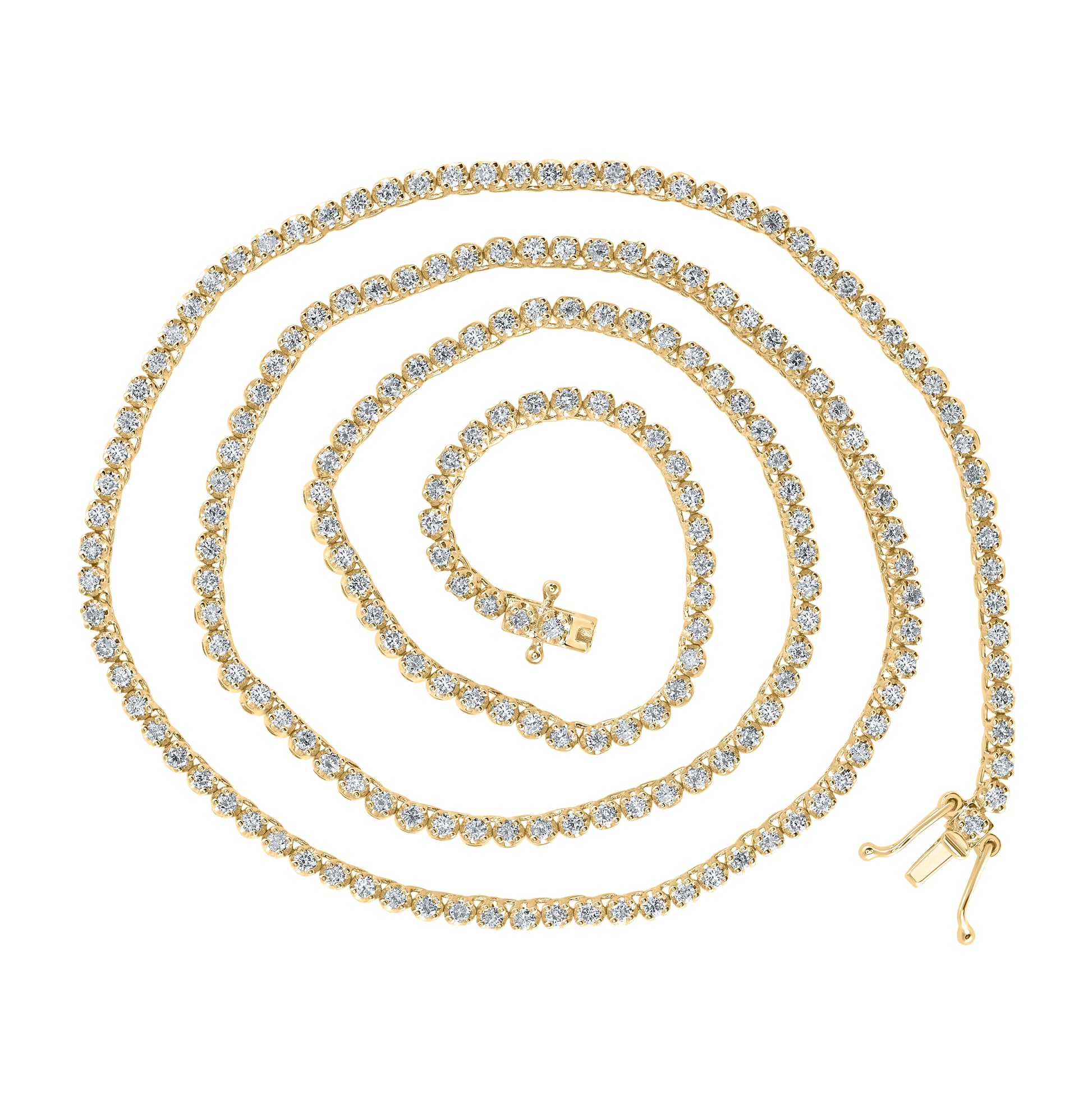 10K Yellow Or White Or Rose Gold Mens Round Diamond 20-inch Tennis Chain Necklace