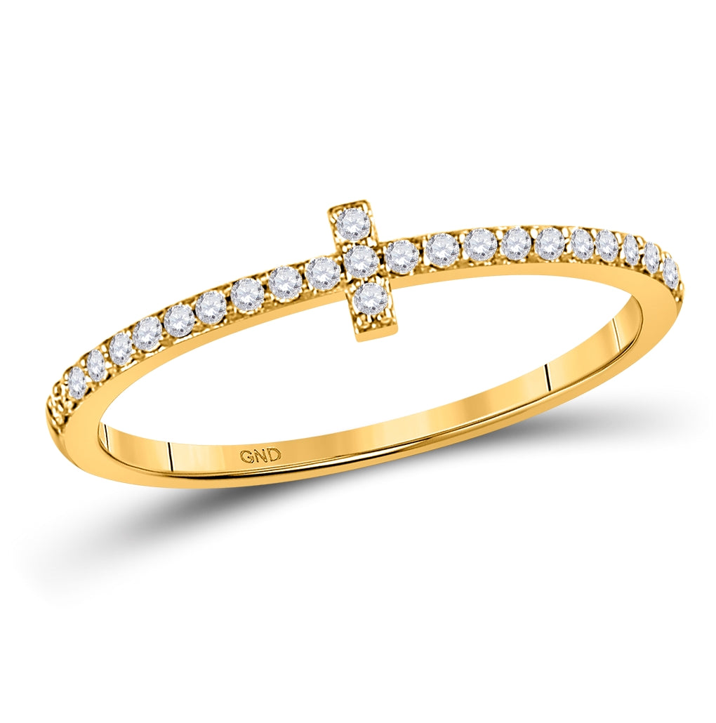 10K Yellow Or White Or Rose Gold Womens Round Diamond Cross Stackable Band Ring , Womens Size: 5-10