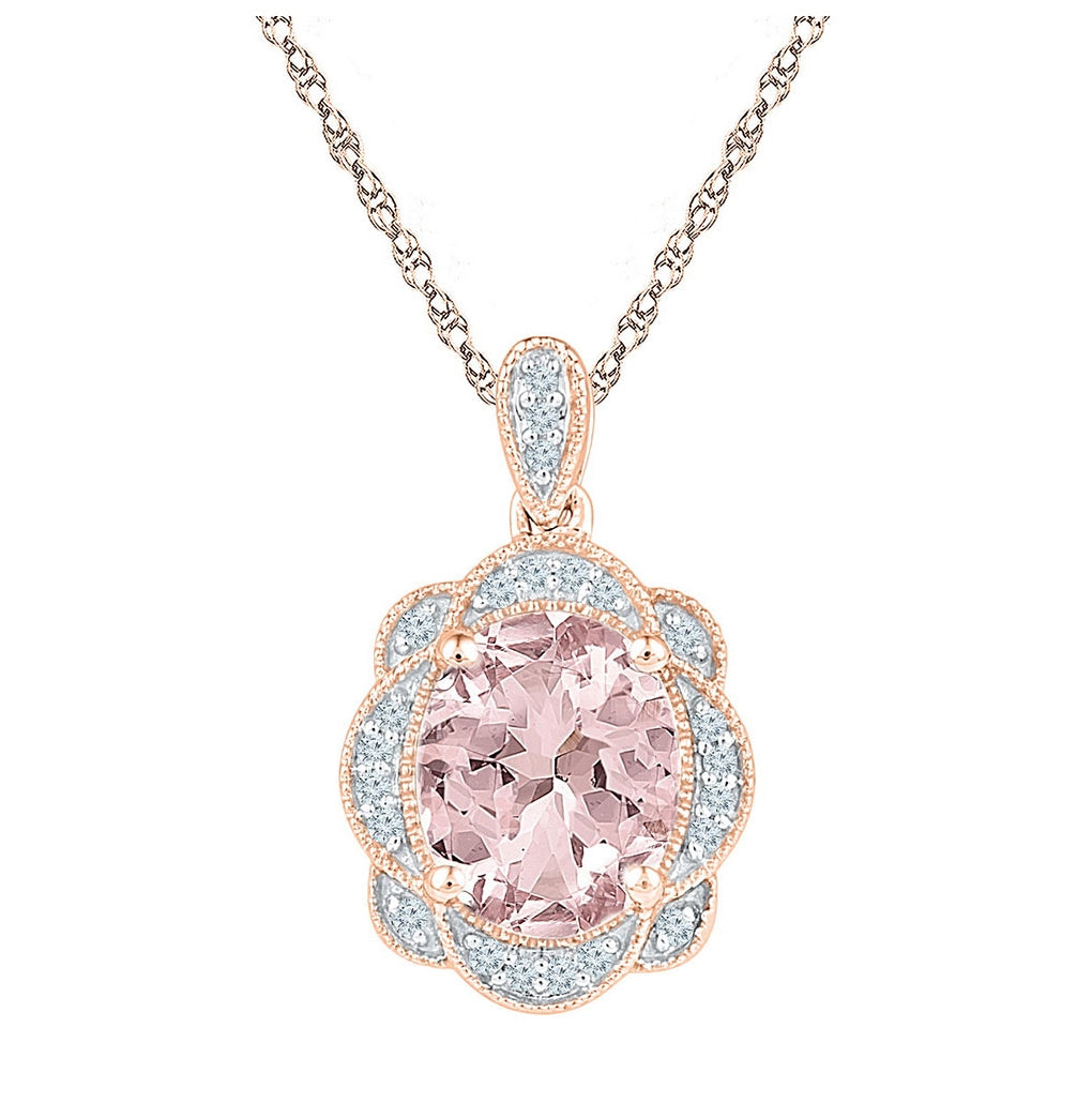 10kt Rose Gold Womens Oval Lab-created Morganite Oval Diamond Pendant 2.00 Cttw