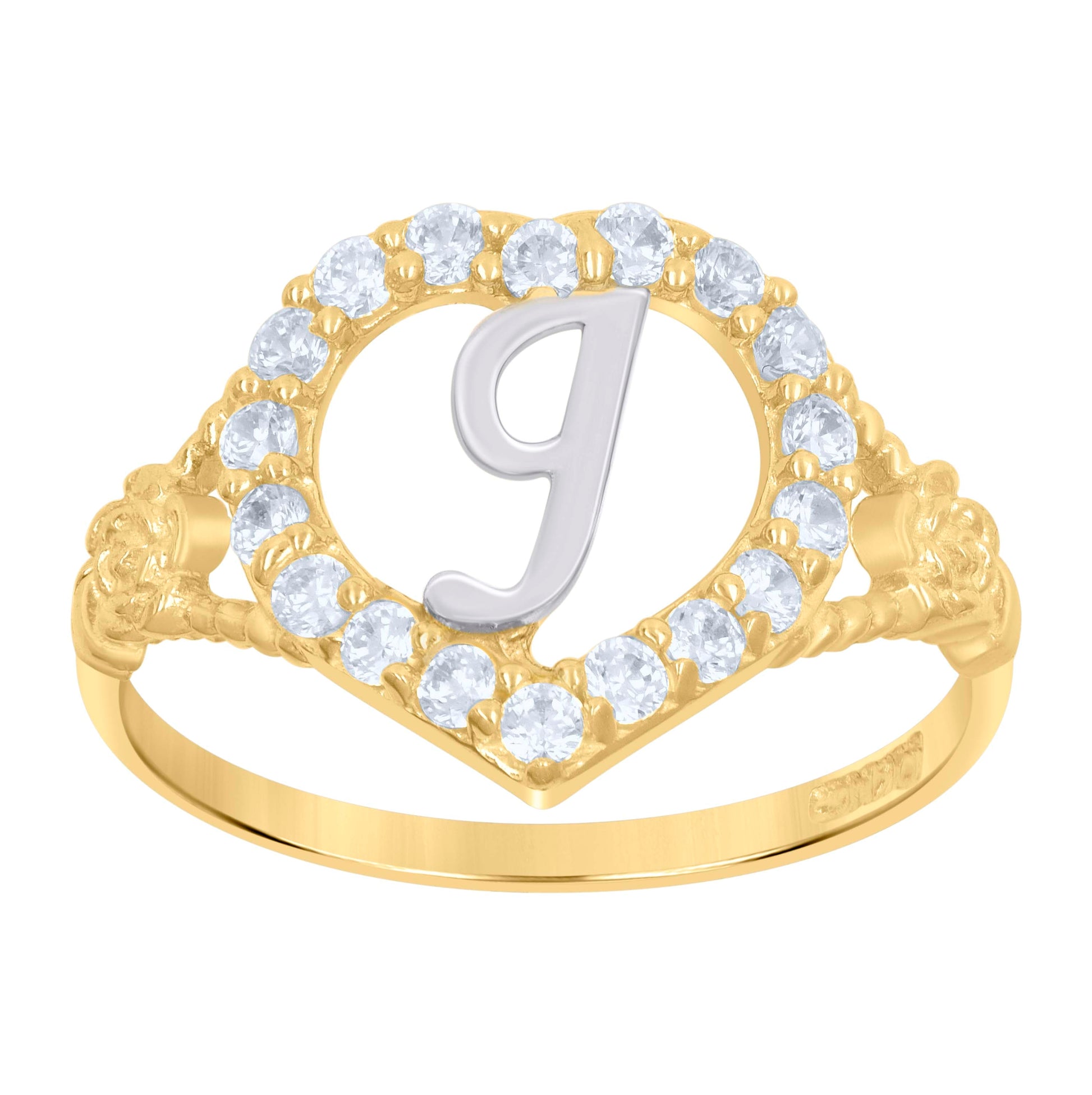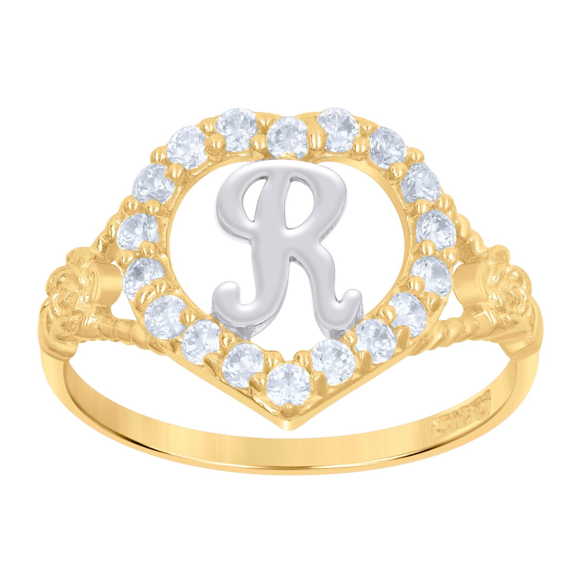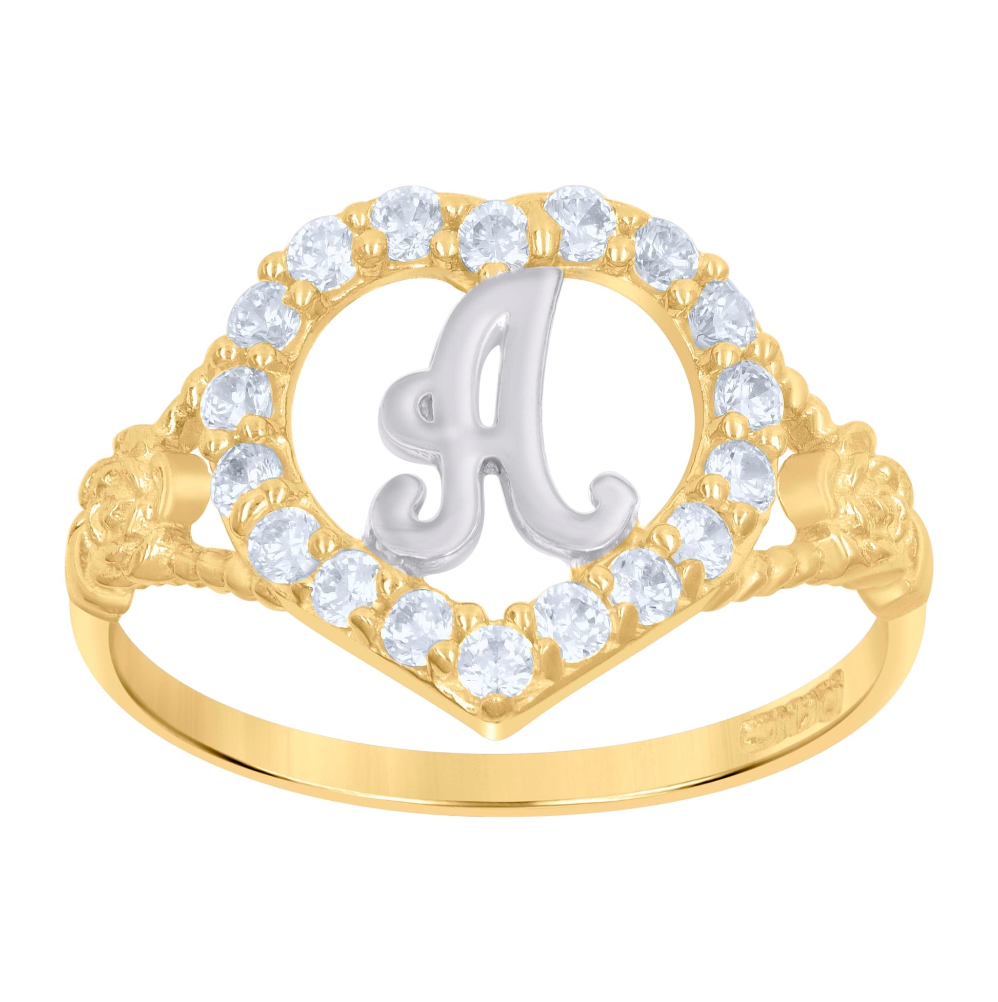 10K Two-Tone Gold Womens Cubic Zirconia Polished Finish Heart Shape Letter Initial Bridal Anniversary Engagement Wedding Ring
