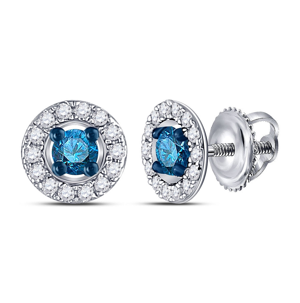 10kt White Gold Womens Round Blue Color Enhanced Diamond Stud Earrings 1/3 Cttw