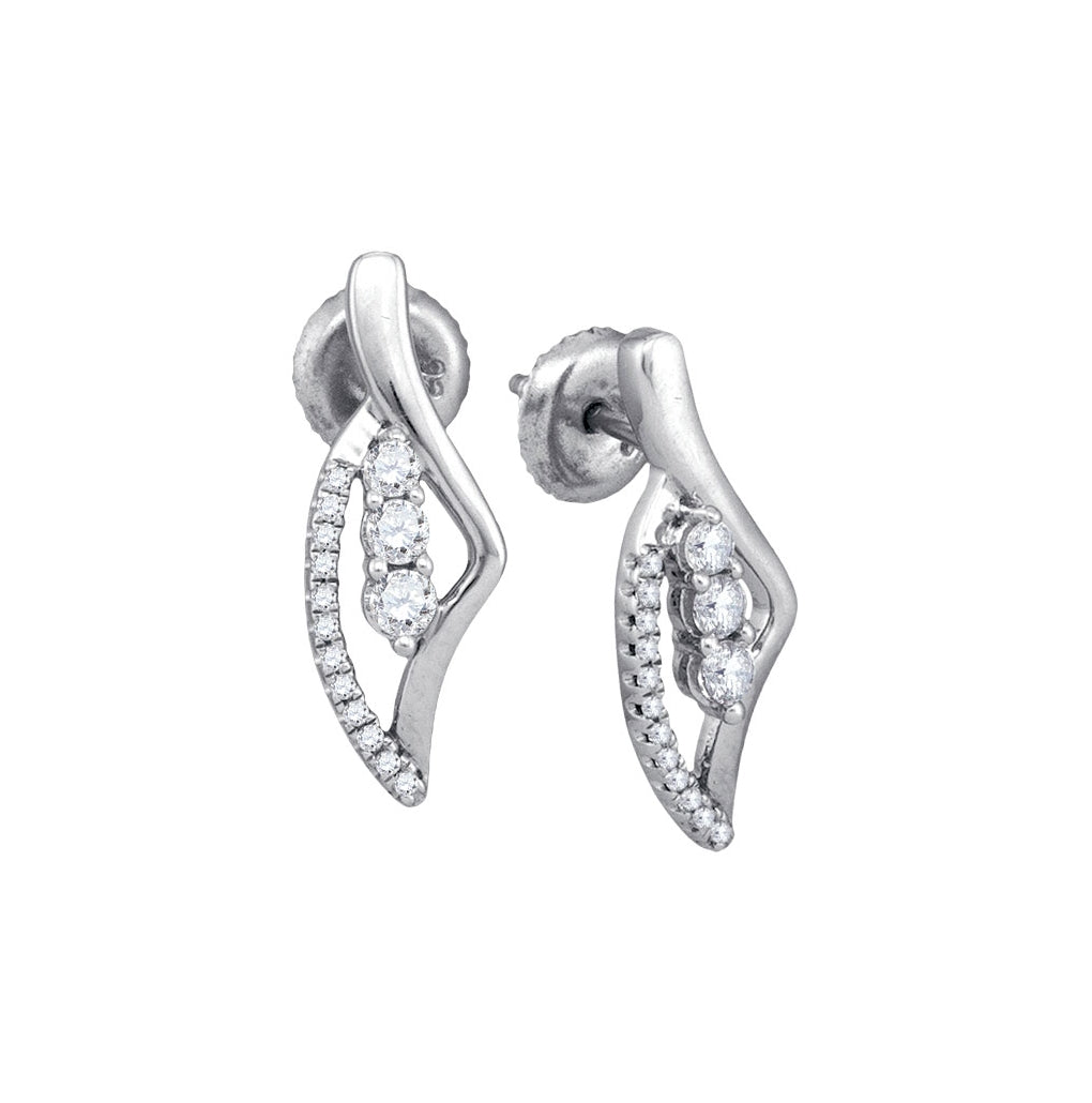 10kt White Gold Womens Round Diamond 3-stone Vertical Stud Earrings 1/3 Cttw