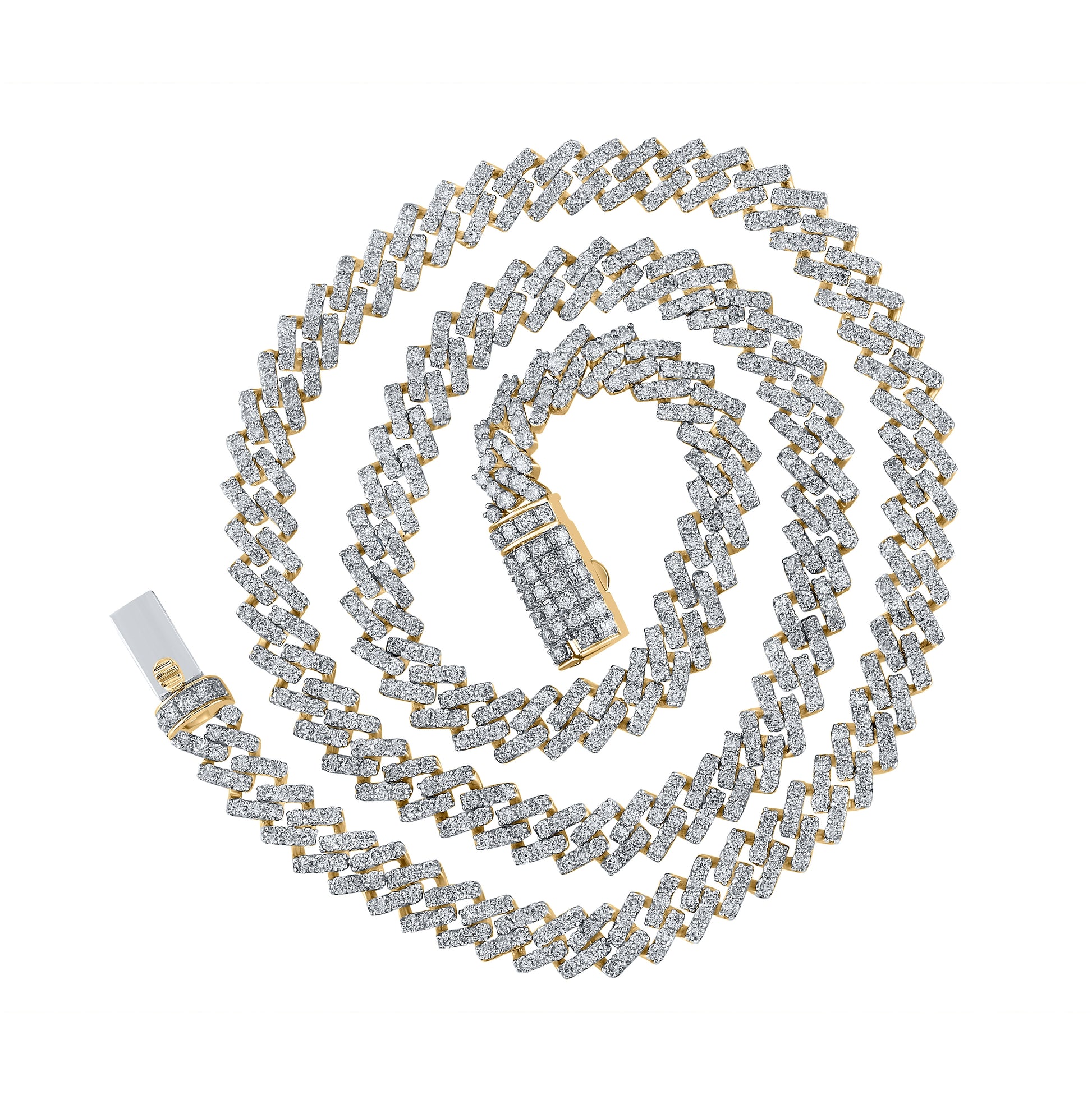 10kt Yellow Gold 19 1/2ctw Diamond Nk (8.40mm) Straight Cuban Mens Chain (22 Inch)