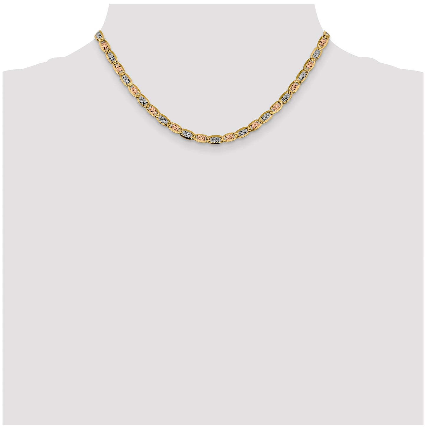 14K 16 inch 4.65mm Tri-color Pav‚ Valentino with Lobster Clasp Chain