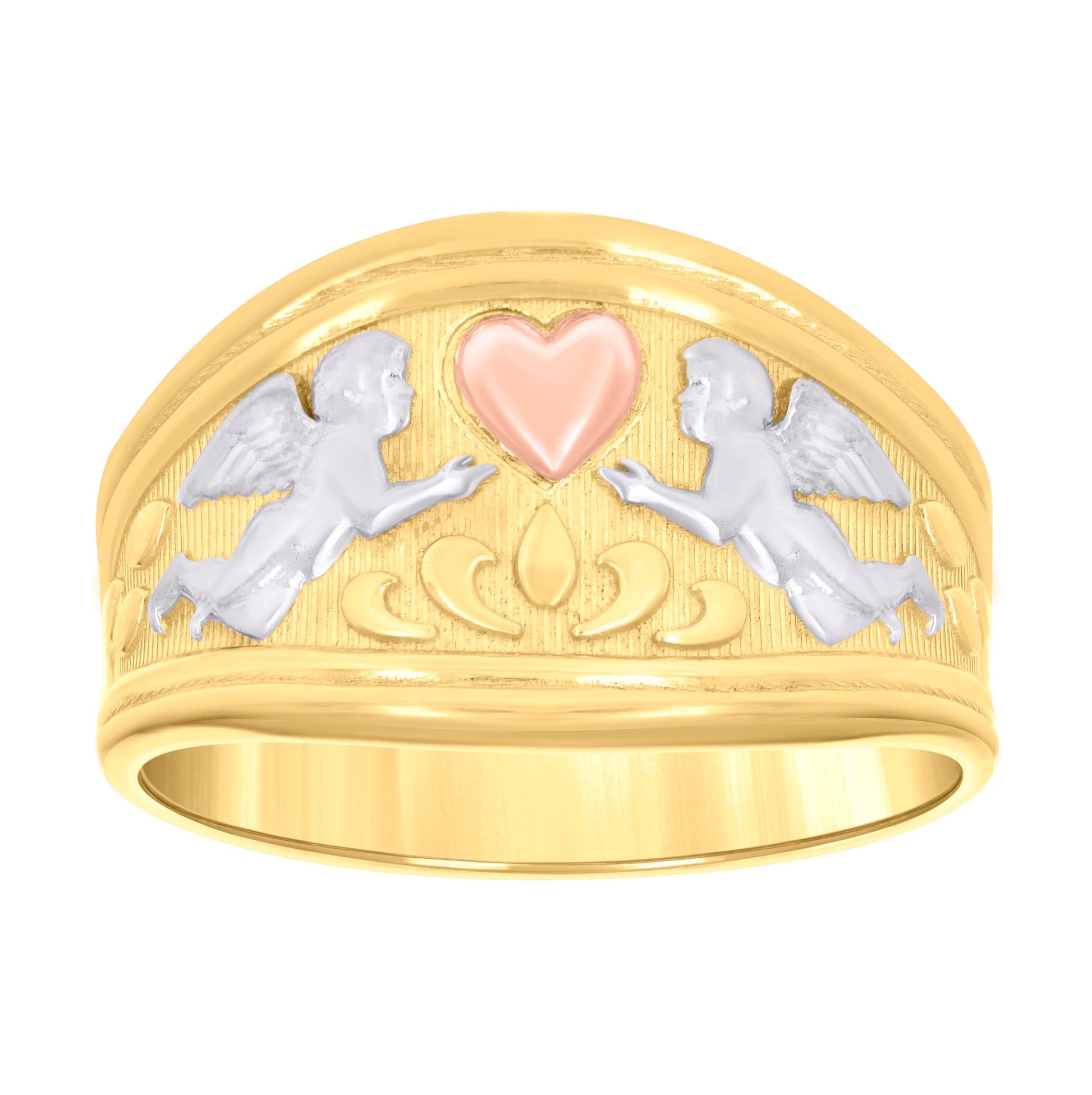 14K Gold Womens Tri-Color Angel Heart Size 7 Good Luck Band Ring