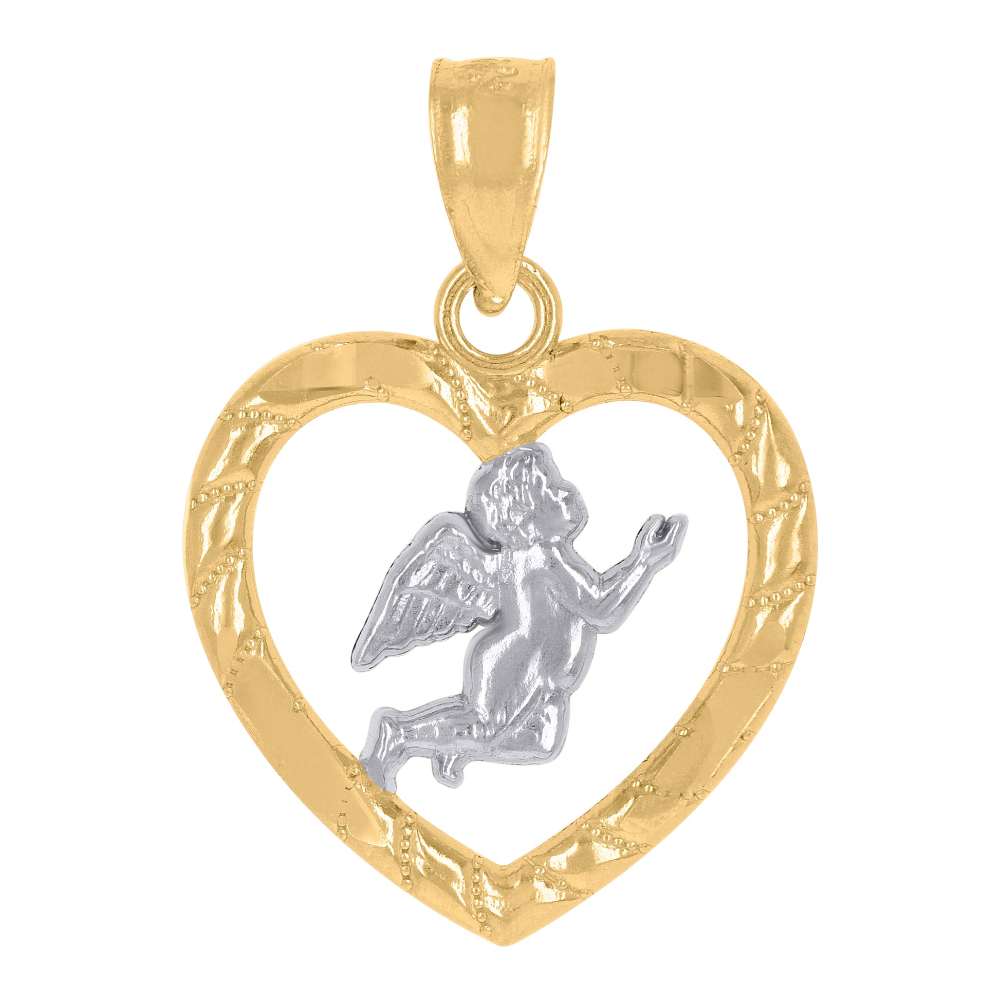 14K Gold Womens Two-Tone Angel Heart Ht:20.7Mm Religious Pendant Charm