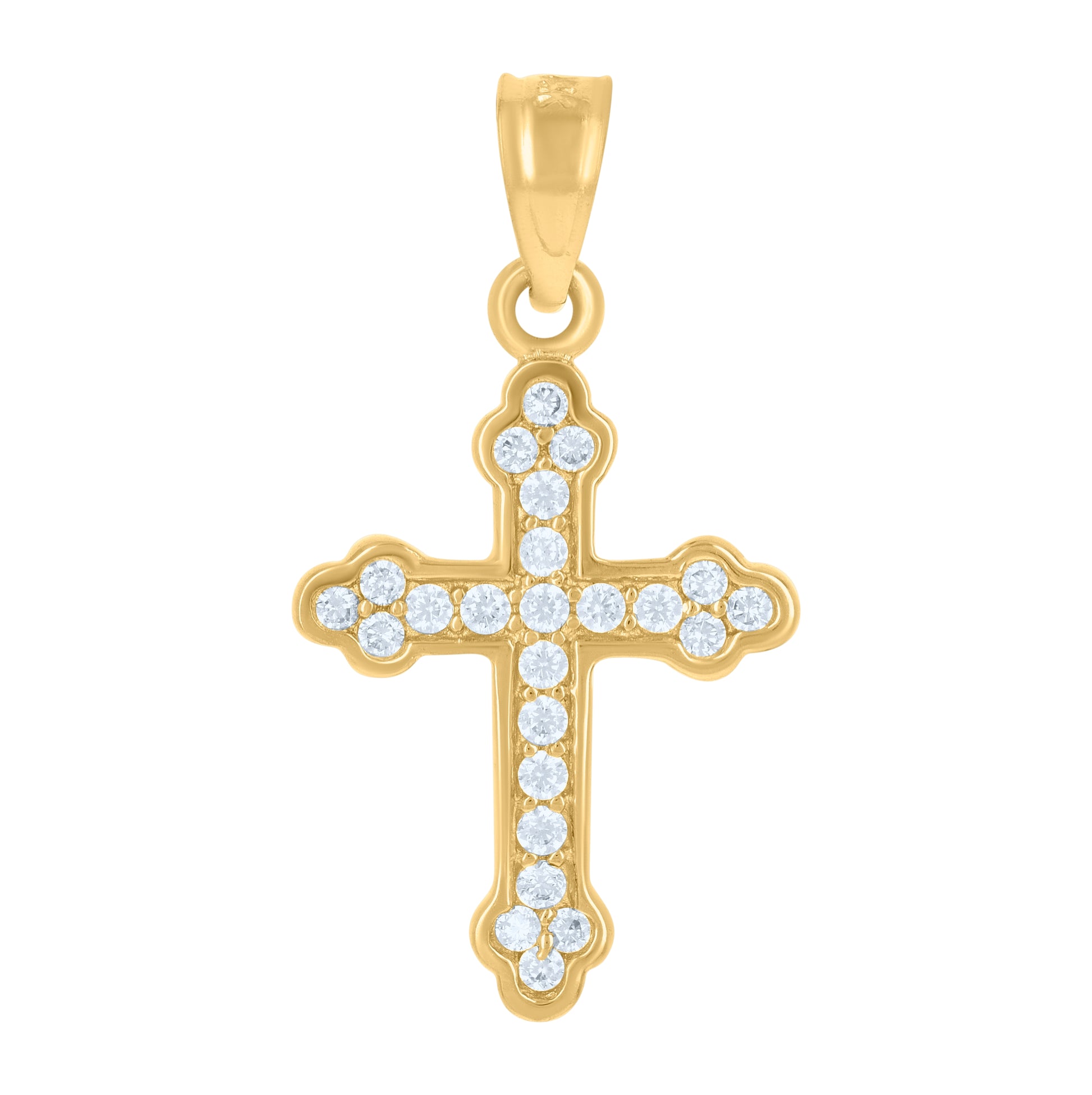 14K Gold Womens Two-Tone Cubic-Zirconia Cross Ht:23.1Mm Religious Pendant Charm