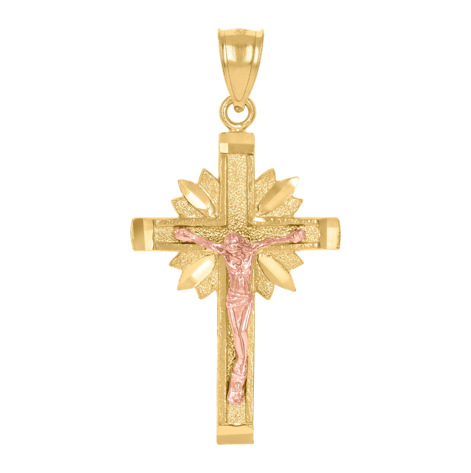 14K Gold Womens Two-Tone Diamond-Cut Cross Crucifix Ht:38.9Mm Religious Pendant Charm