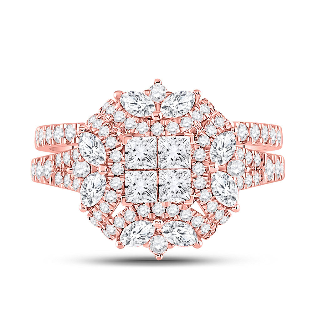 14K Rose Gold Princess Marquise Diamond Bridal Wedding Ring Band Set 1-3/4 Cttw, Womens Size: 5-10