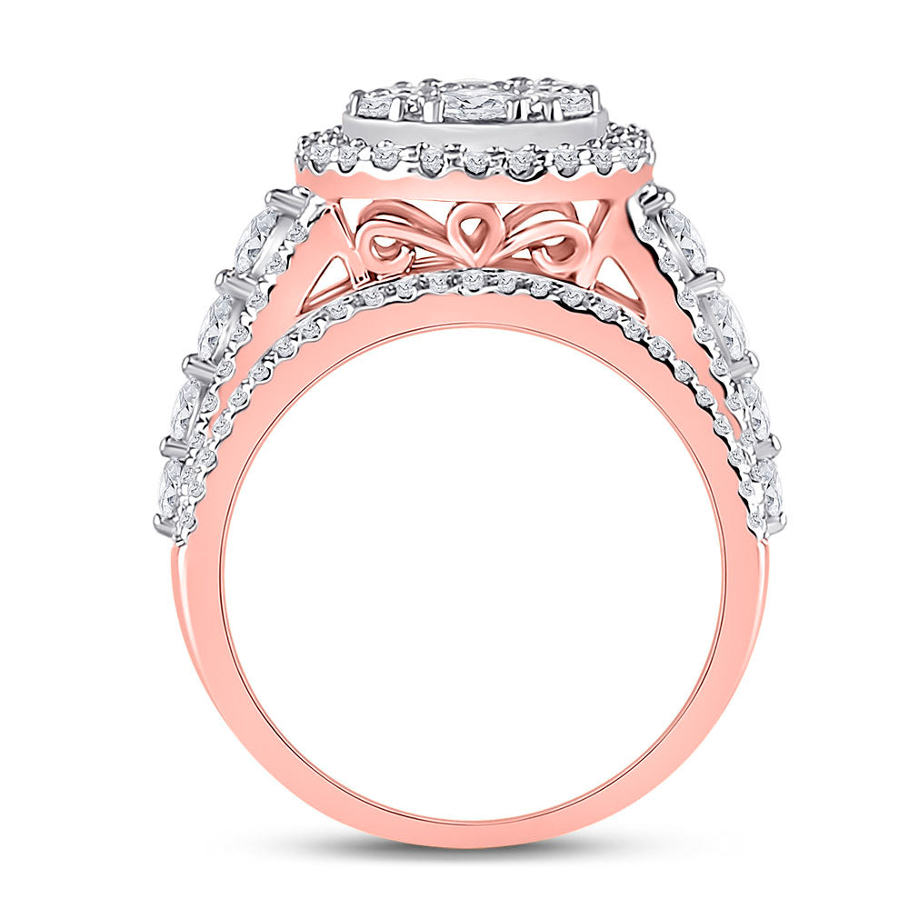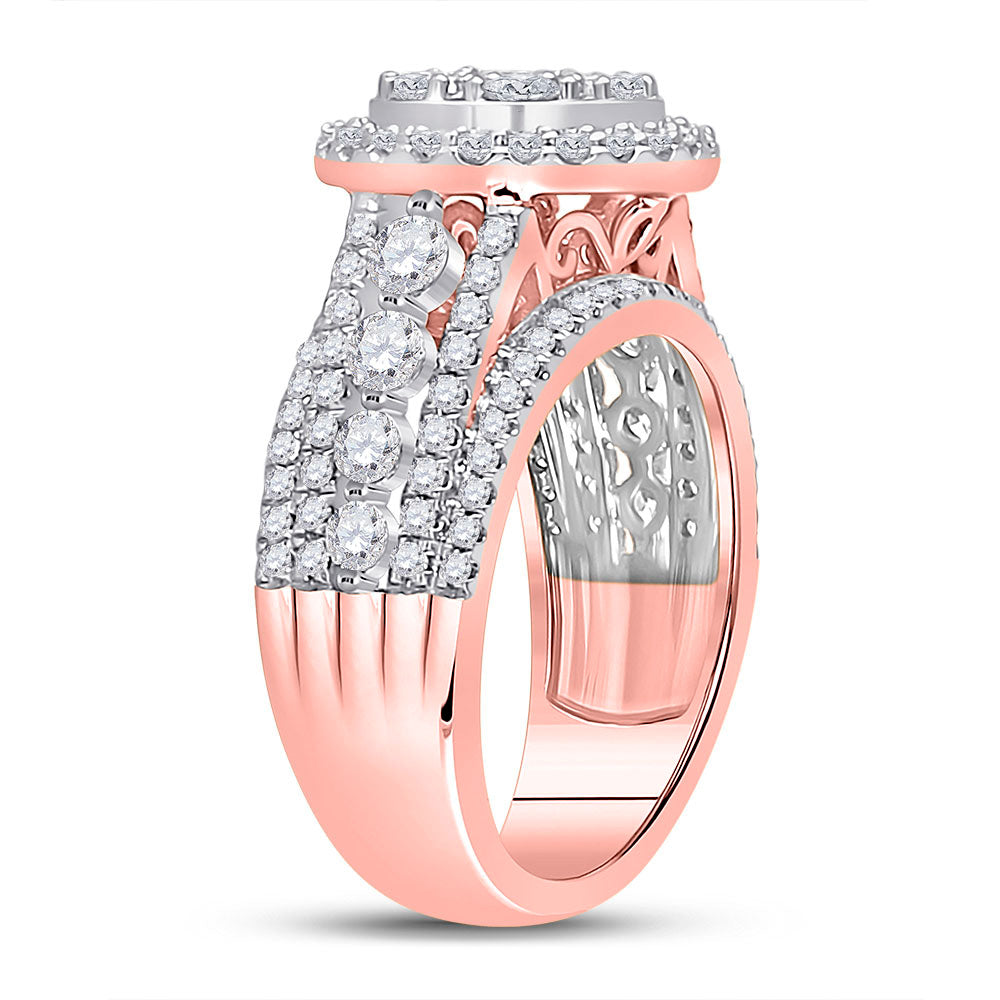 14K Rose Gold Round Diamond Cluster Bridal Wedding Engagement Ring 2 Cttw, Womens Size: 5-10