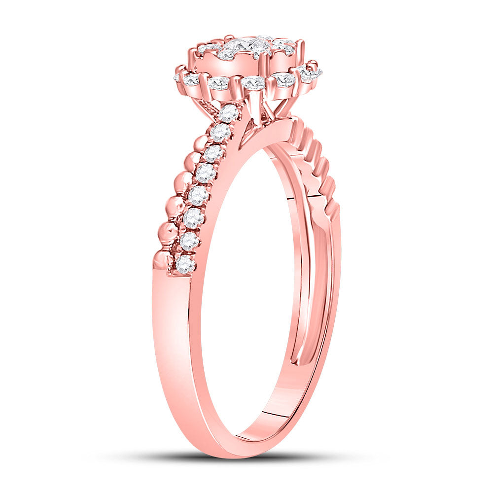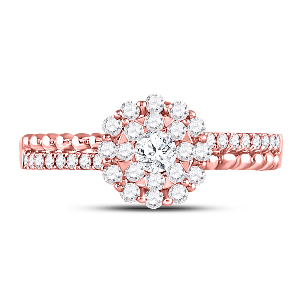 14K Rose Gold Round Diamond Solitaire Beaded ridal Wedding Engagement Ring 1/2 Cttw, Womens Size: 5-10