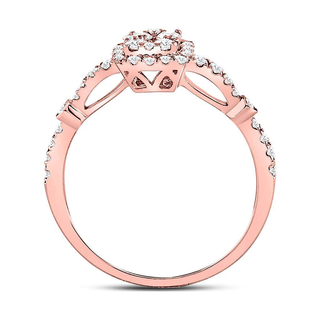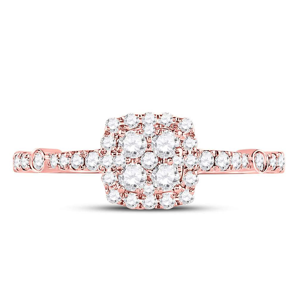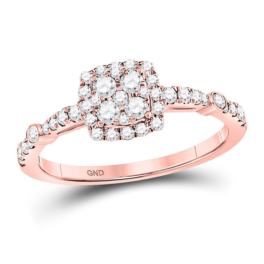 14K Rose Gold Round Diamond Square Cluster Bridal Wedding Engagement Ring 1/2 Cttw, Womens Size: 5-10
