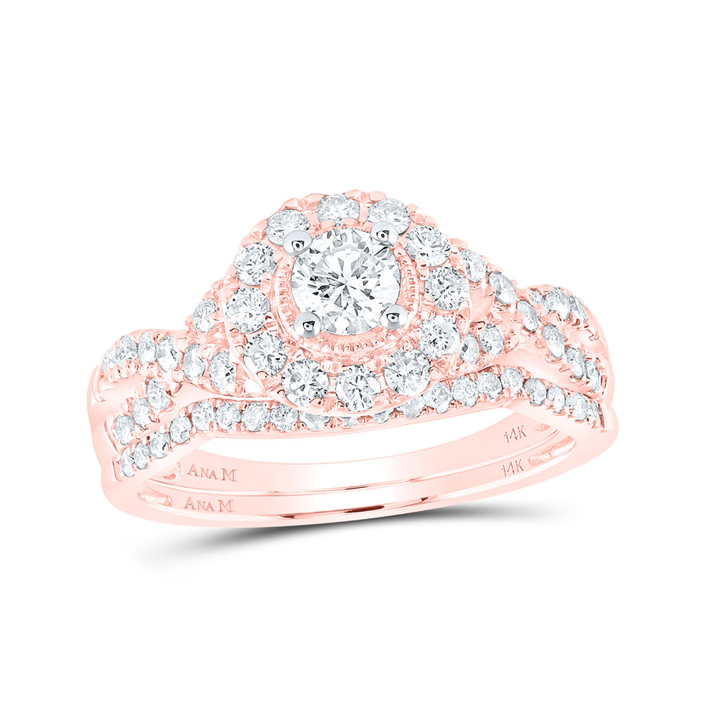 14K Rose Gold Round Diamond Twist Bridal Wedding Ring Band Set 1 Cttw, Womens Size: 5-10