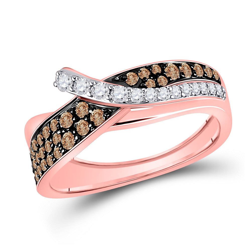 14K Rose Gold Womens Round Brown Diamond Band Ring 1/2 Cttw, Womens Size: 5-10