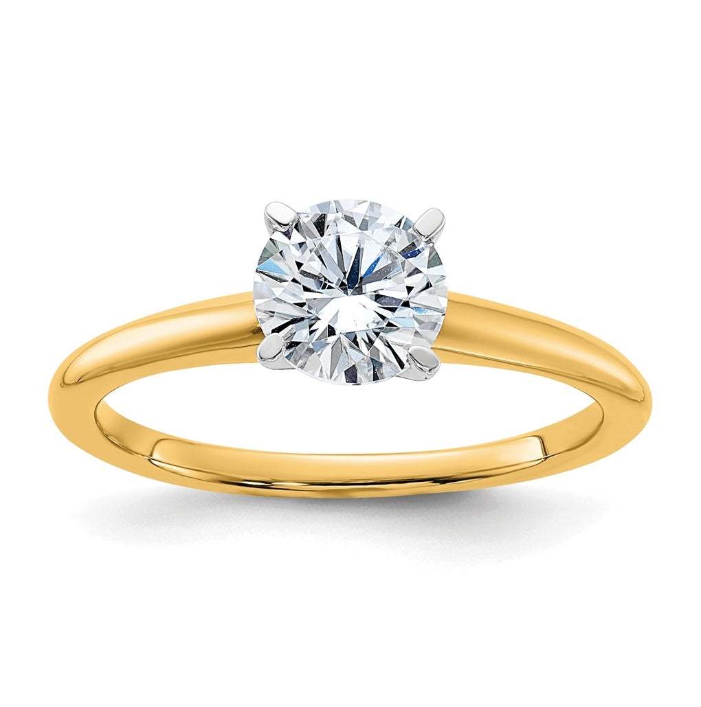 14k Two Tone 1ct. G H I True Light Round Moissanite Solitaire Ring, Size 8