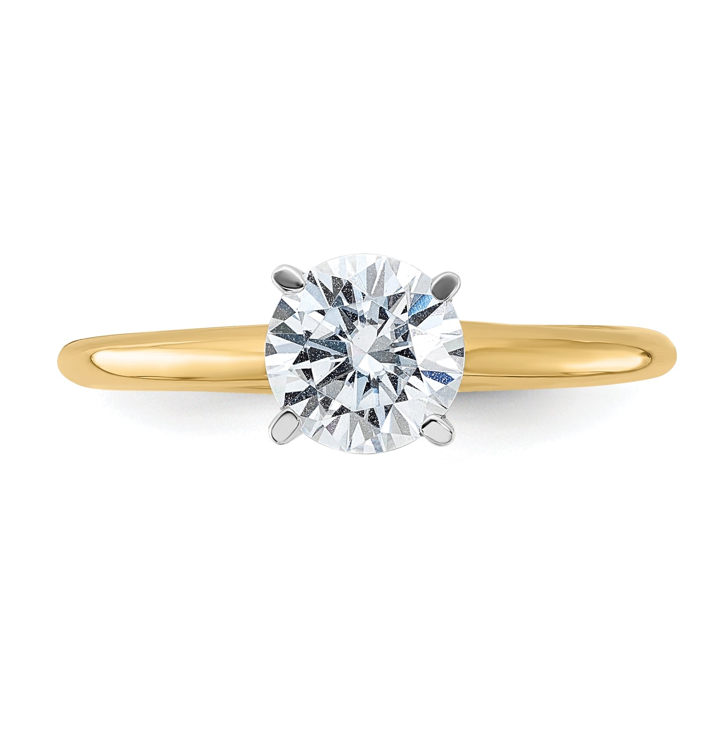 14k Two Tone 6mm Round True Light Moissanite Solitaire, Size 7