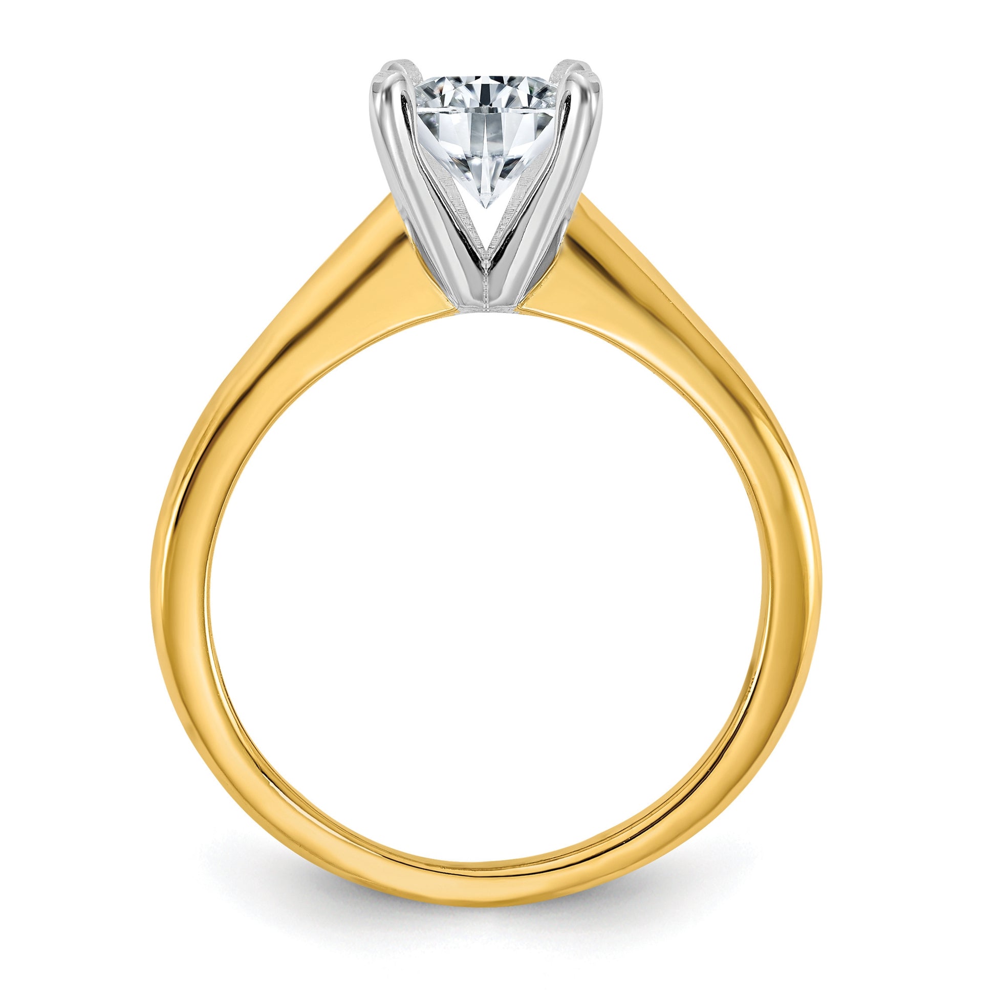 14k Two Tone 8.5mm Square Cushion True Light Moissanite Solitaire, Size 10