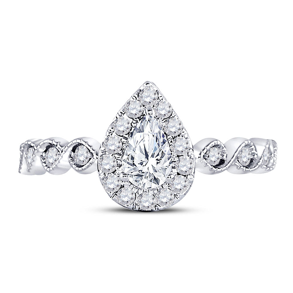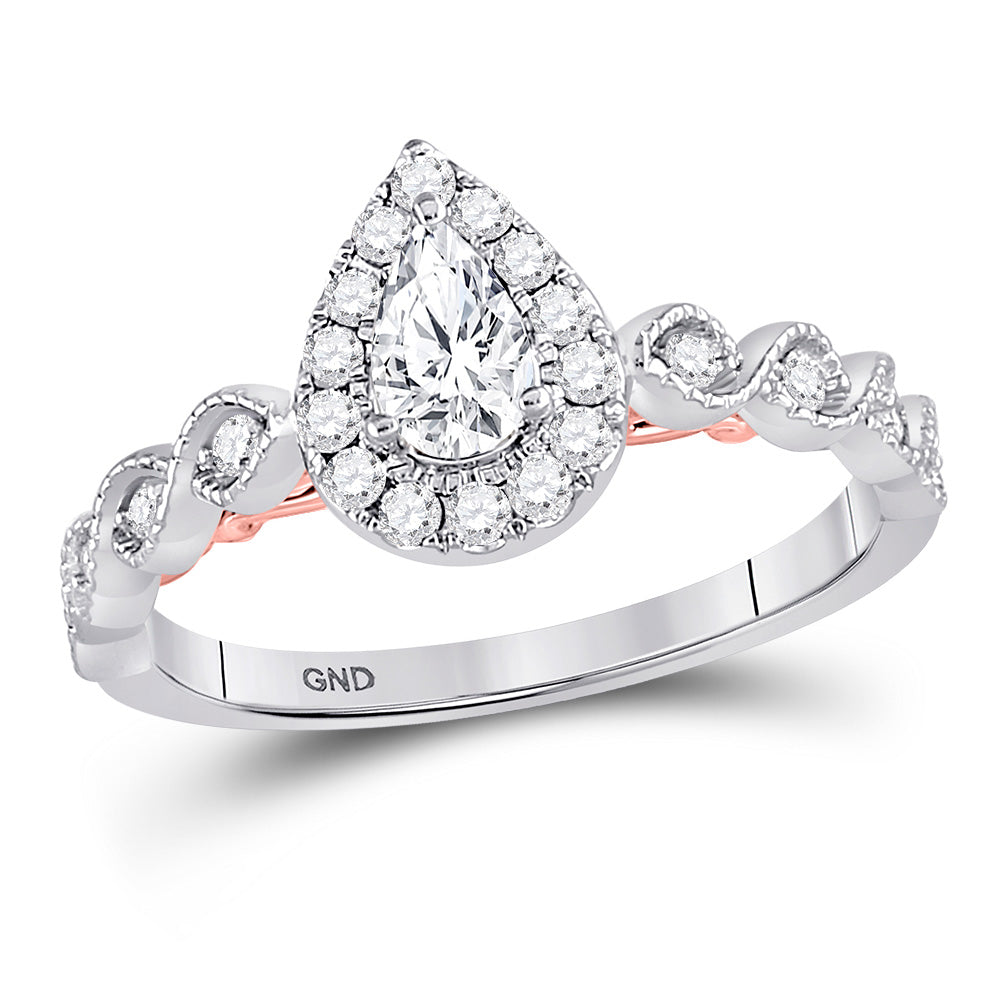 14K Two-tone Gold Pear Diamond Solitaire Bridal Wedding Engagement Ring 3/4 Cttw, Womens Size: 5-10