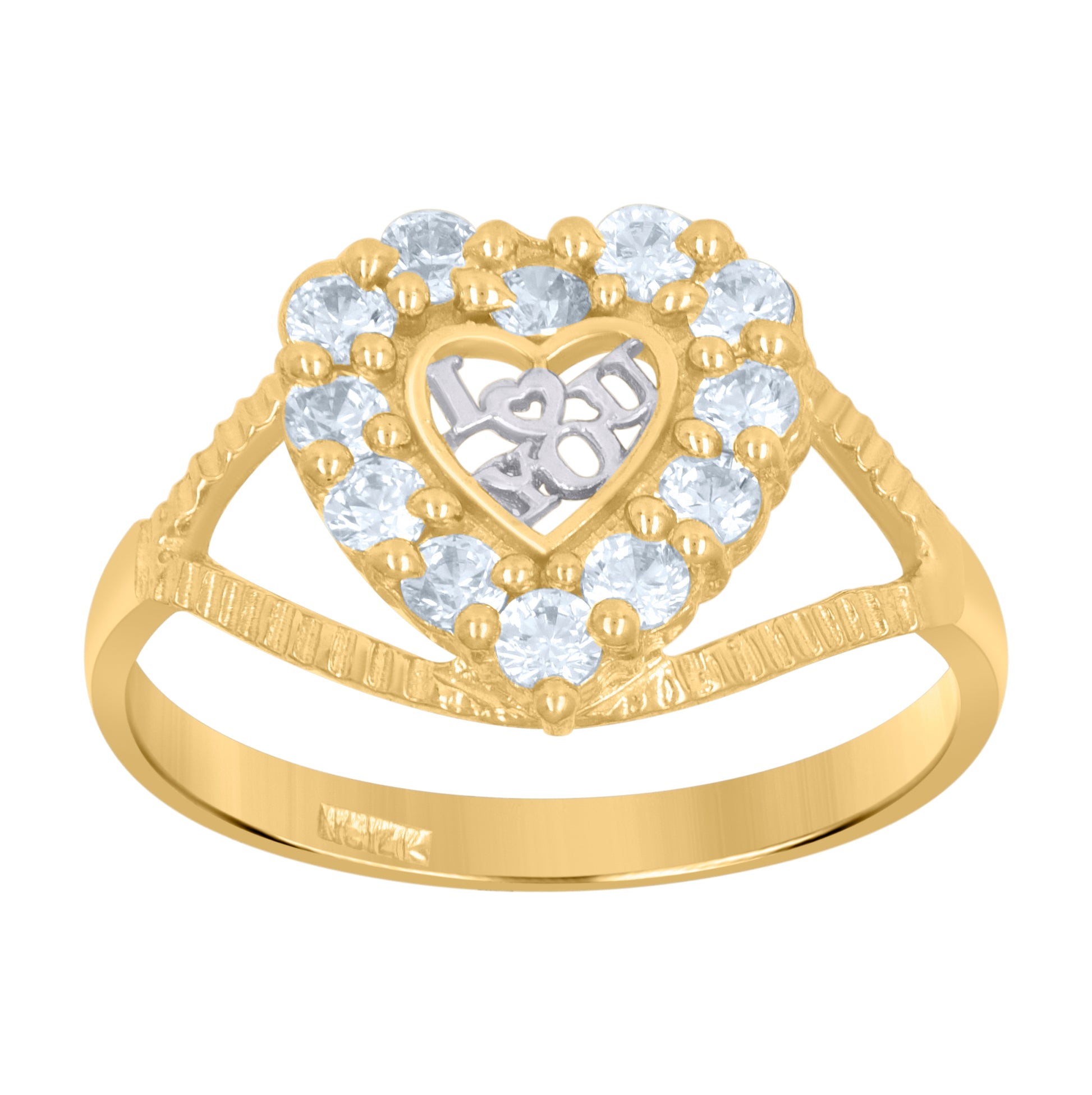14K Two-Tone Gold Womens Cubic Zirconia I Love You Heart Band Ring