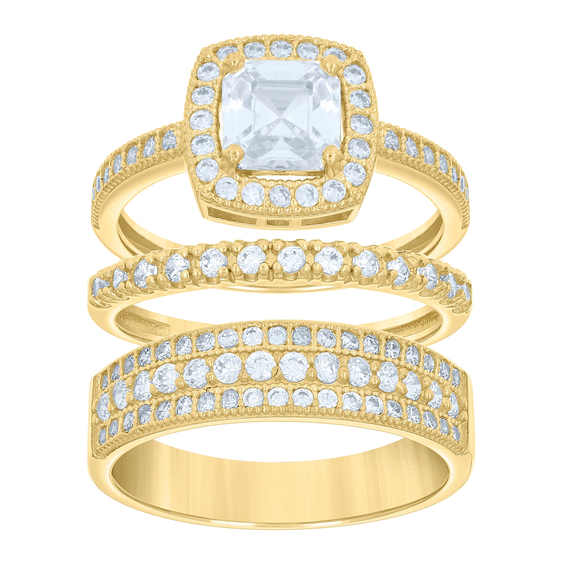 14K Two-Tone Gold Womens Round And Princess Cubic Zirconia Square Head Halo Bridal Ring Set