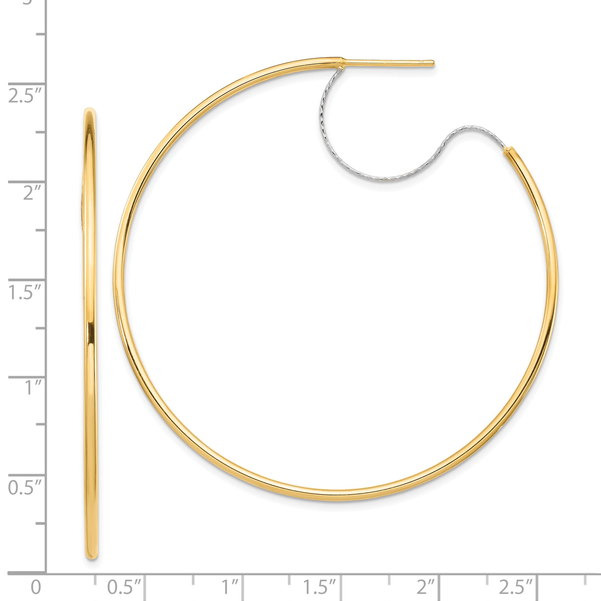 14K Two-Tone Large 2x55mm Diamond Cut Wire Polished Hoop Earrings