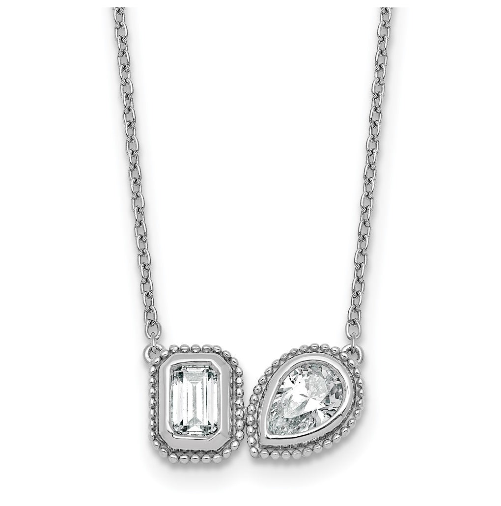 14k White Gold 1 carat Lab Grown Diamond VS+ F+ Complete 18 inch Two Stone Fashion Necklace