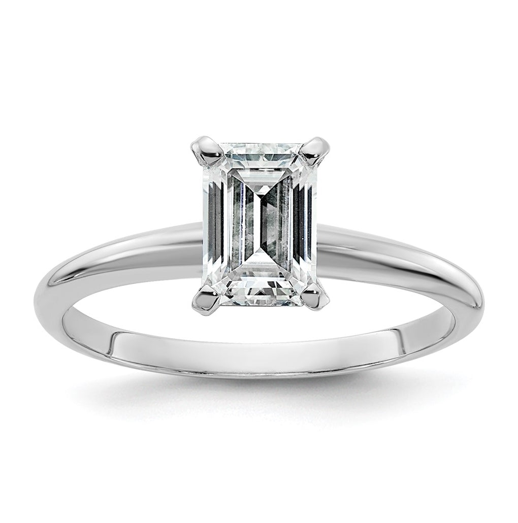 14K White Gold 1ct. D E F Pure Light Emerald Moissanite Solitaire Ring, Size 9