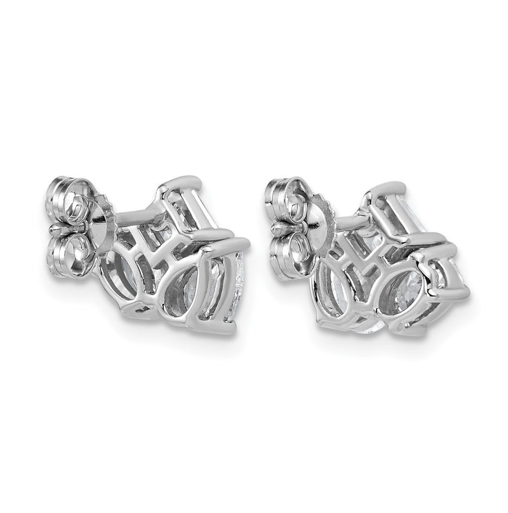 14k White Gold 2 carat Lab Grown Diamond VS+ F+ Complete Princess Round and Pear Three Stone Post Earrings