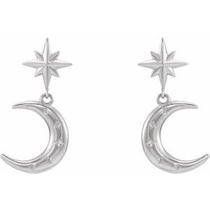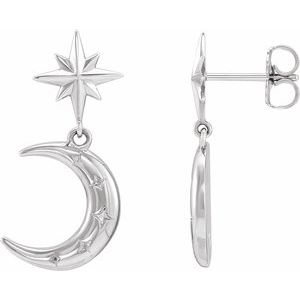 14K White Gold 24.83 X 11.47 Mm Pair Friction Backs Included Polished Crescent Moon Dangle Earrings
