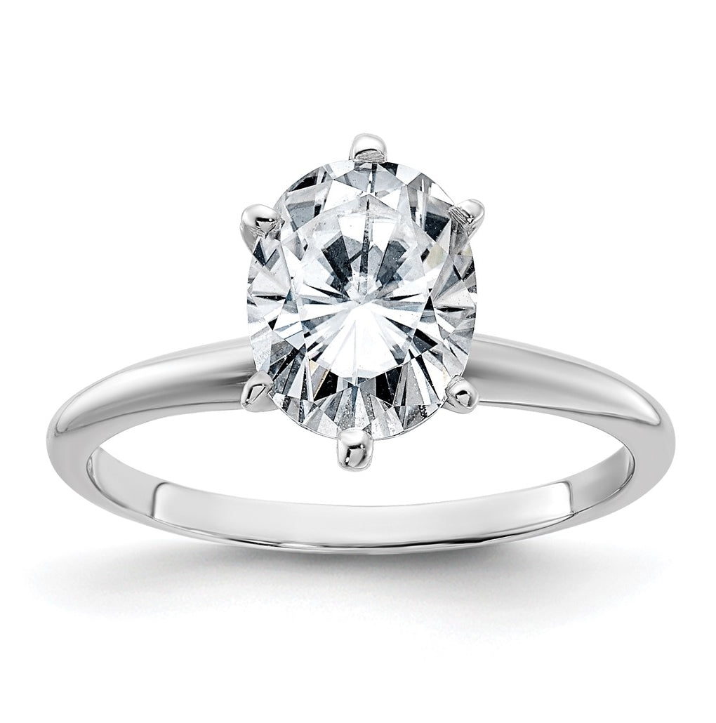 14K White Gold 2ct. D E F Pure Light Oval Moissanite Solitaire Ring, Size 8