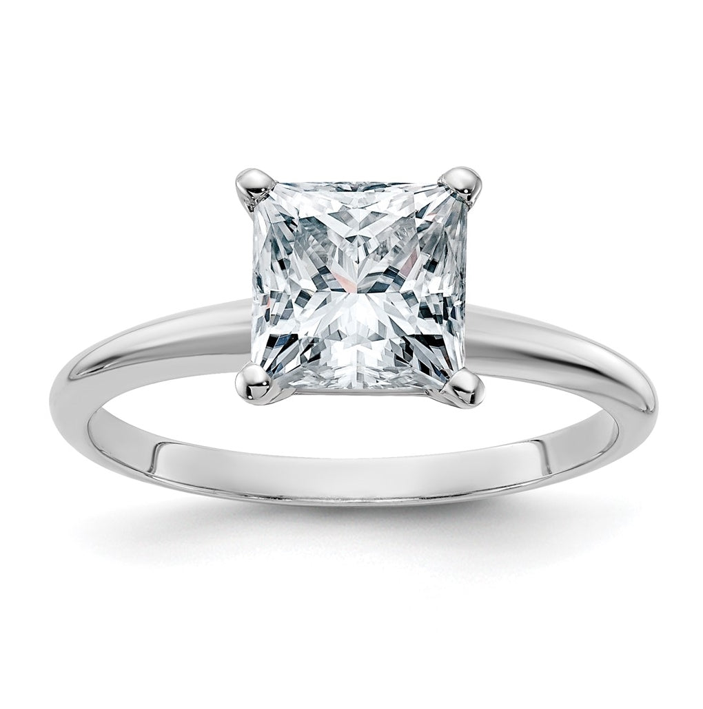 14K White Gold 2ct. D E F Pure Light Princess Moissanite Solitaire Ring, Size 6