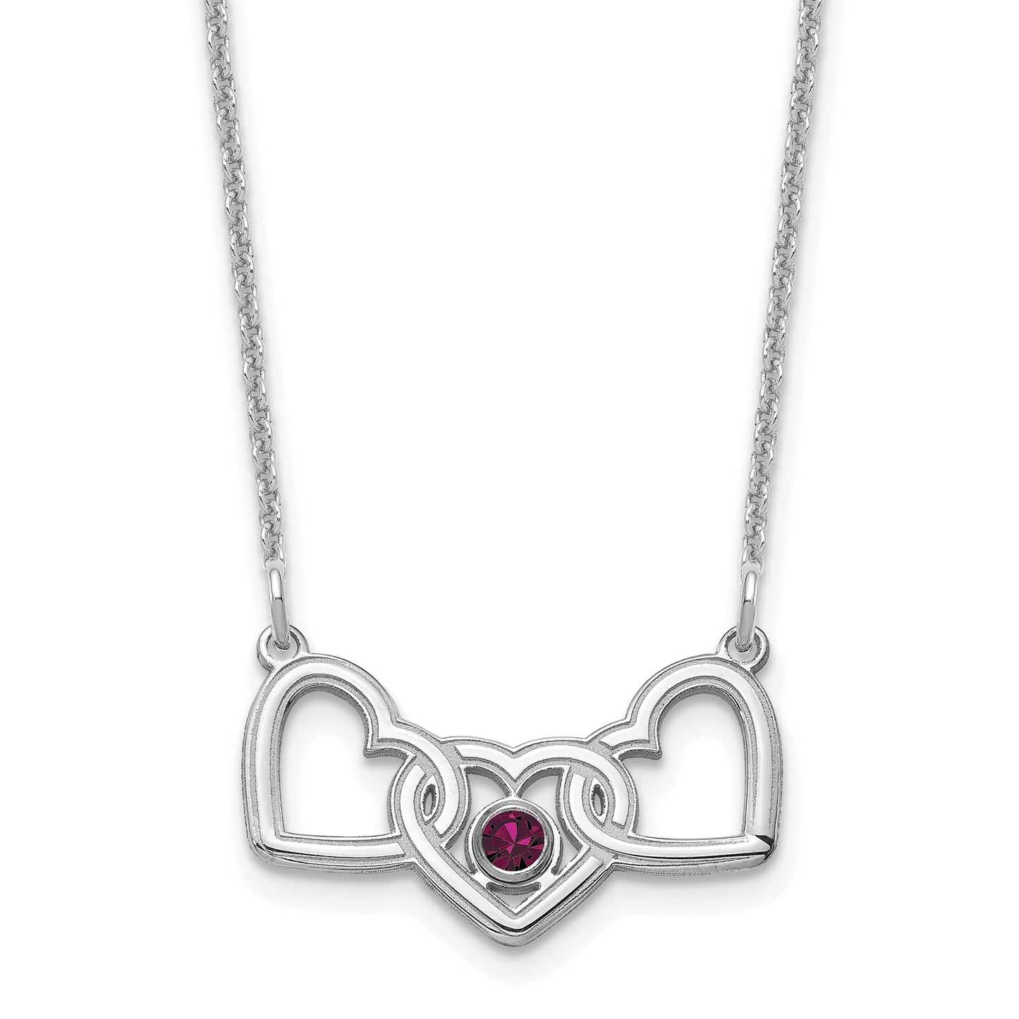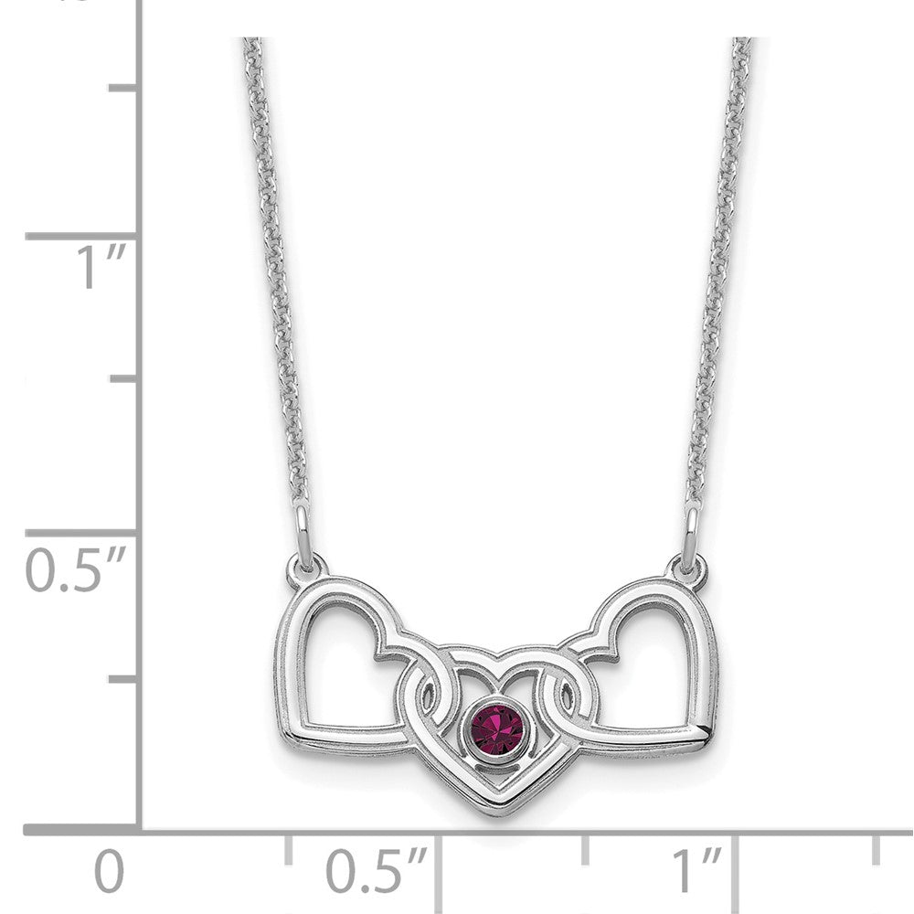 14K White Gold 3 Hearts 1 Birthstone with 18k Rhodium Plated Bezel Necklace