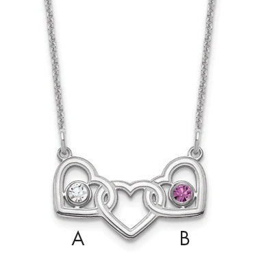 14K White Gold 3 Hearts 2 Birthstones with 18k Rhodium Plated Bezels Necklace