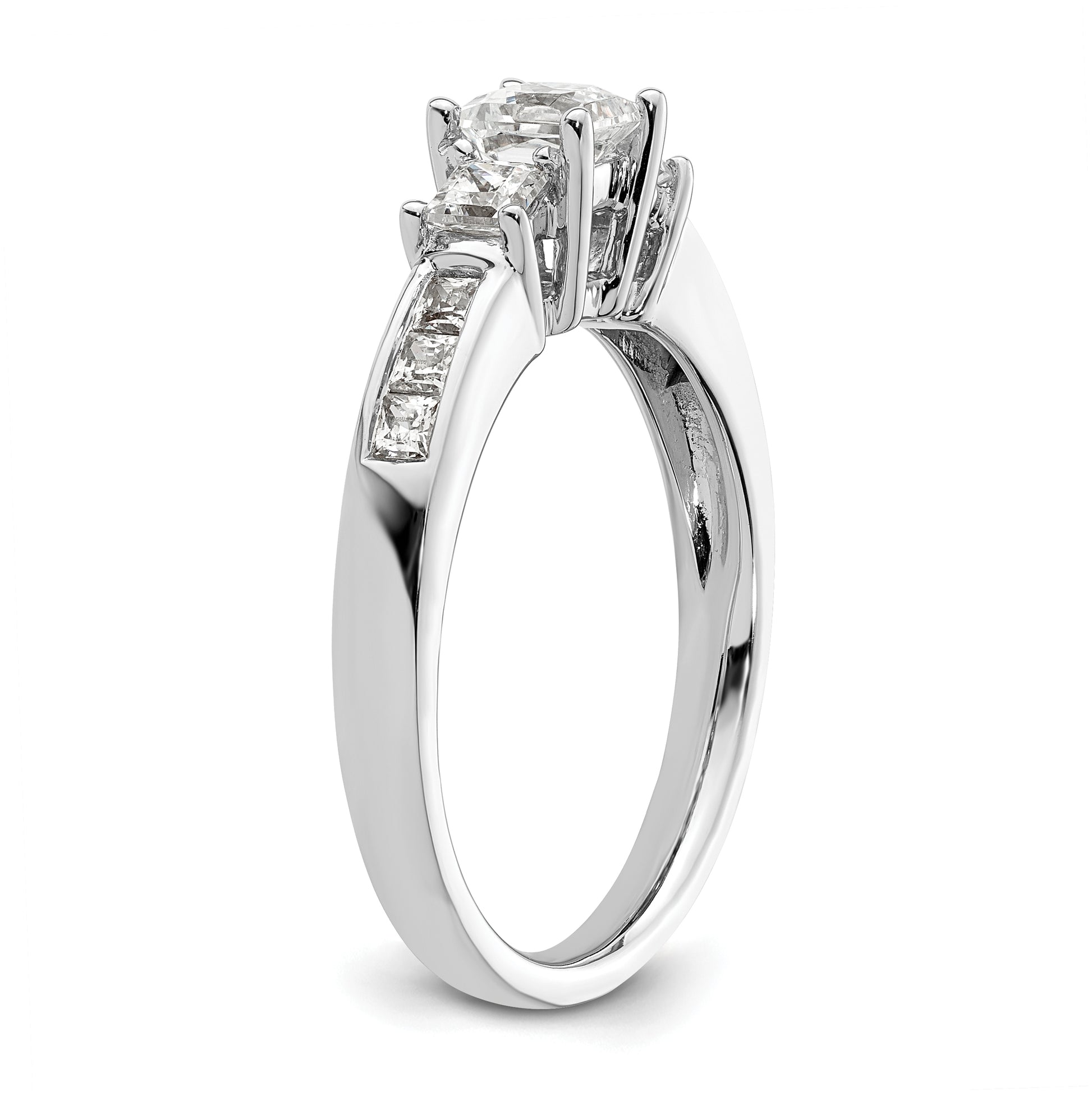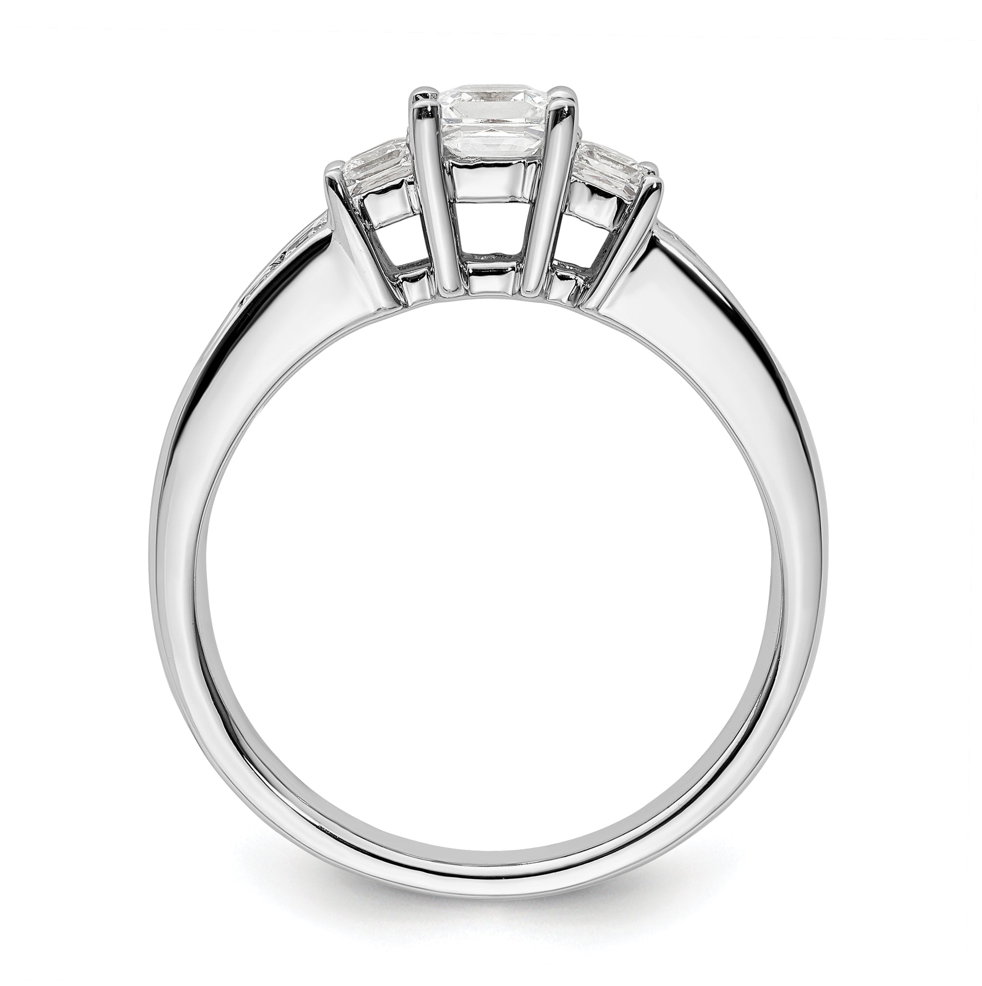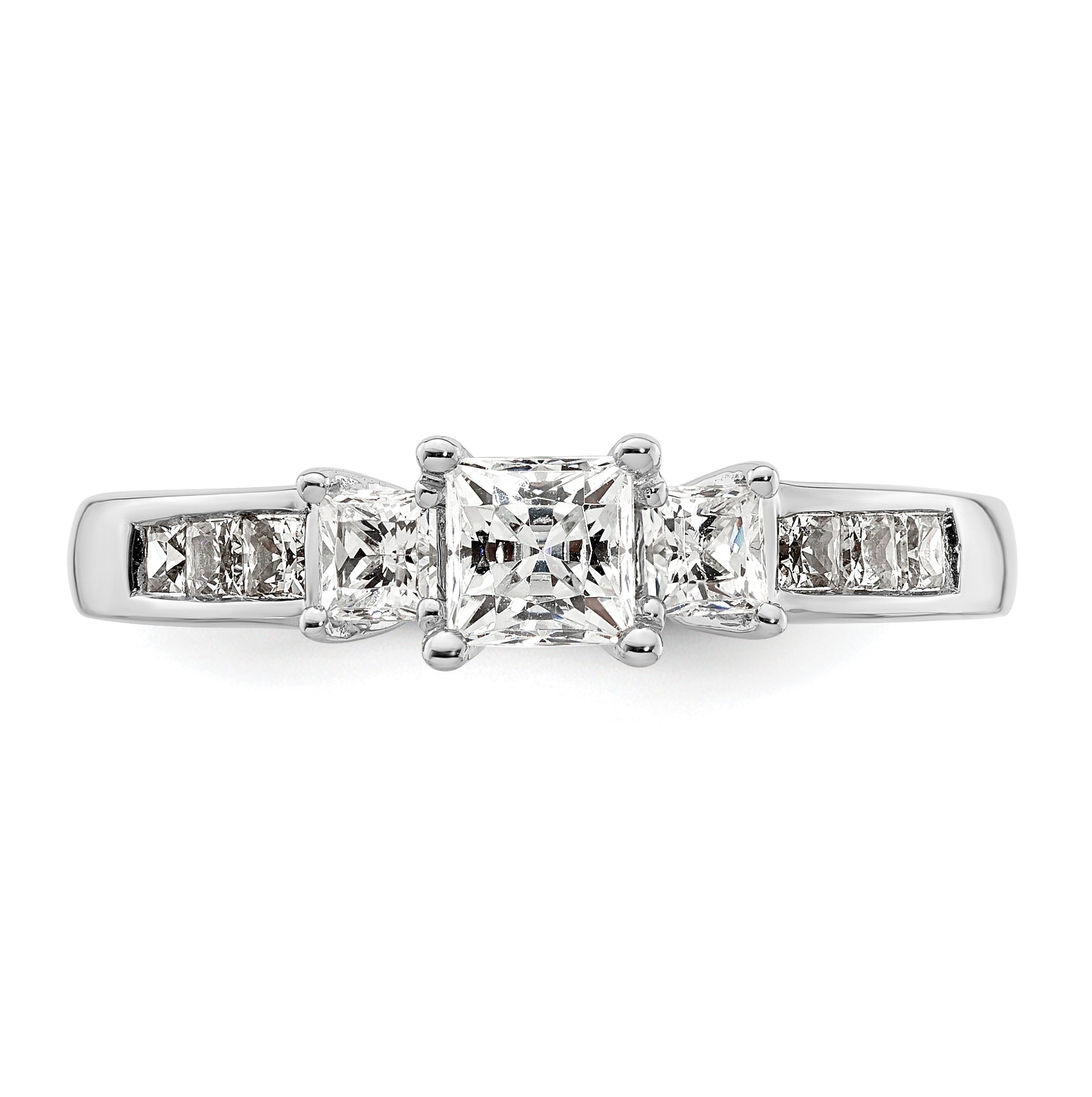 14K White Gold 3-Stone Plus (Holds 1/2 carat (5.2mm) Princess Center and (2-2.8mm) Princess Sides) Diamond Semi-Mount Engagement Ring
