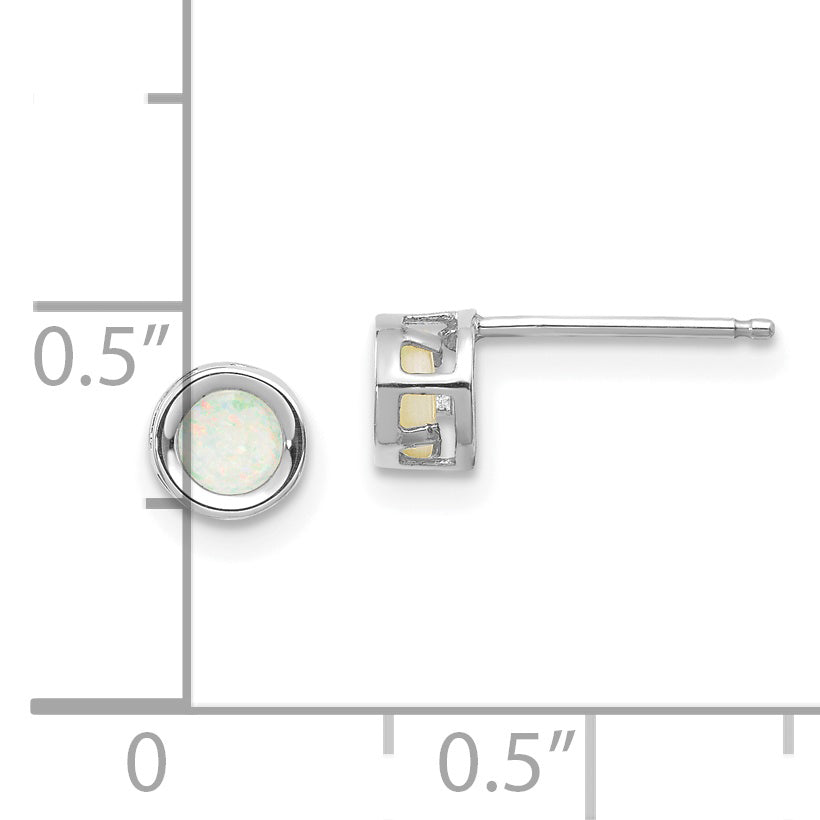 14k White Gold 4mm Oval Bezel October/Opal Post Earrings