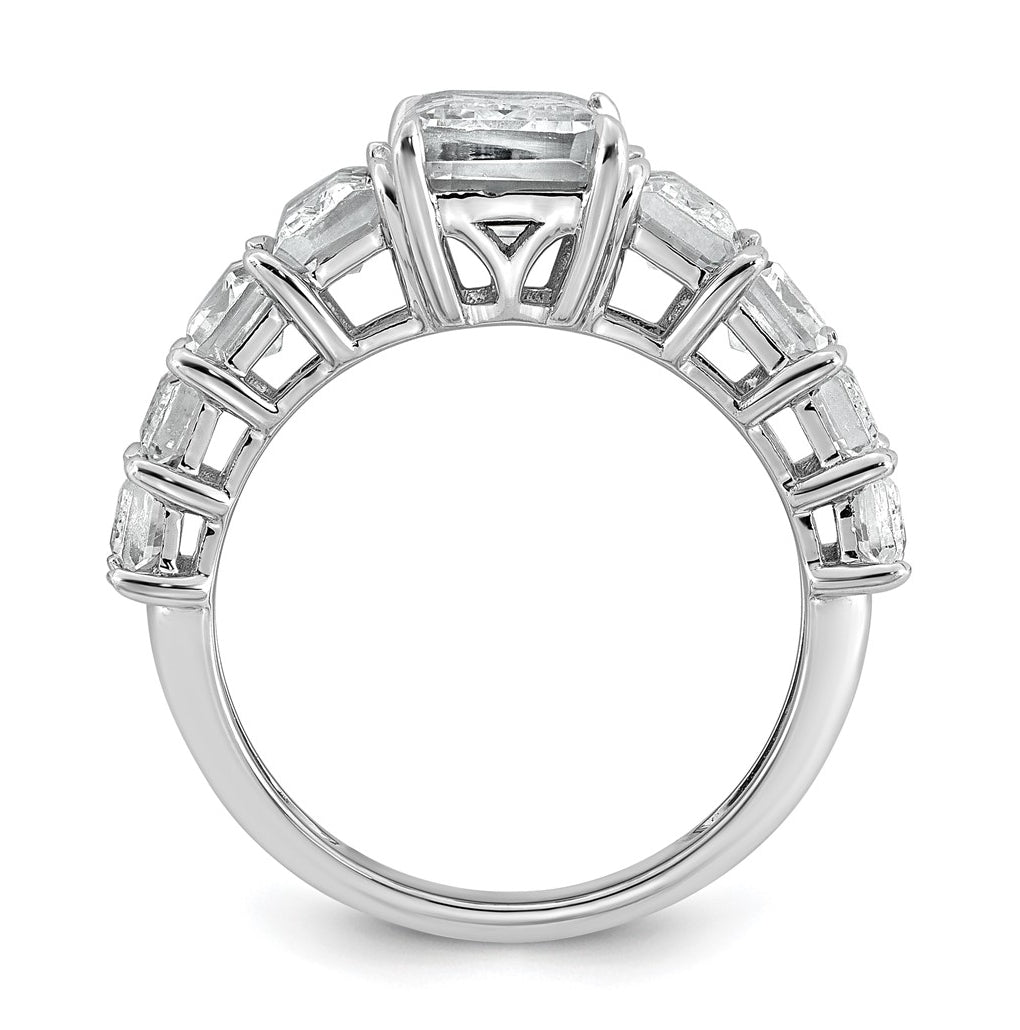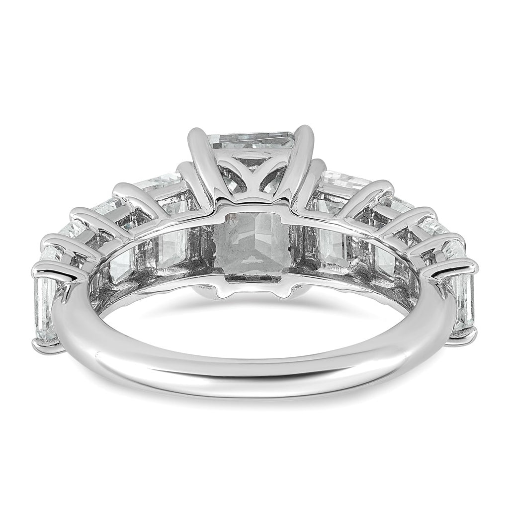 14k White Gold 5 carat Lab Grown Diamond VS+ F+ Emerald Complete Shared Prong Engagement Ring
