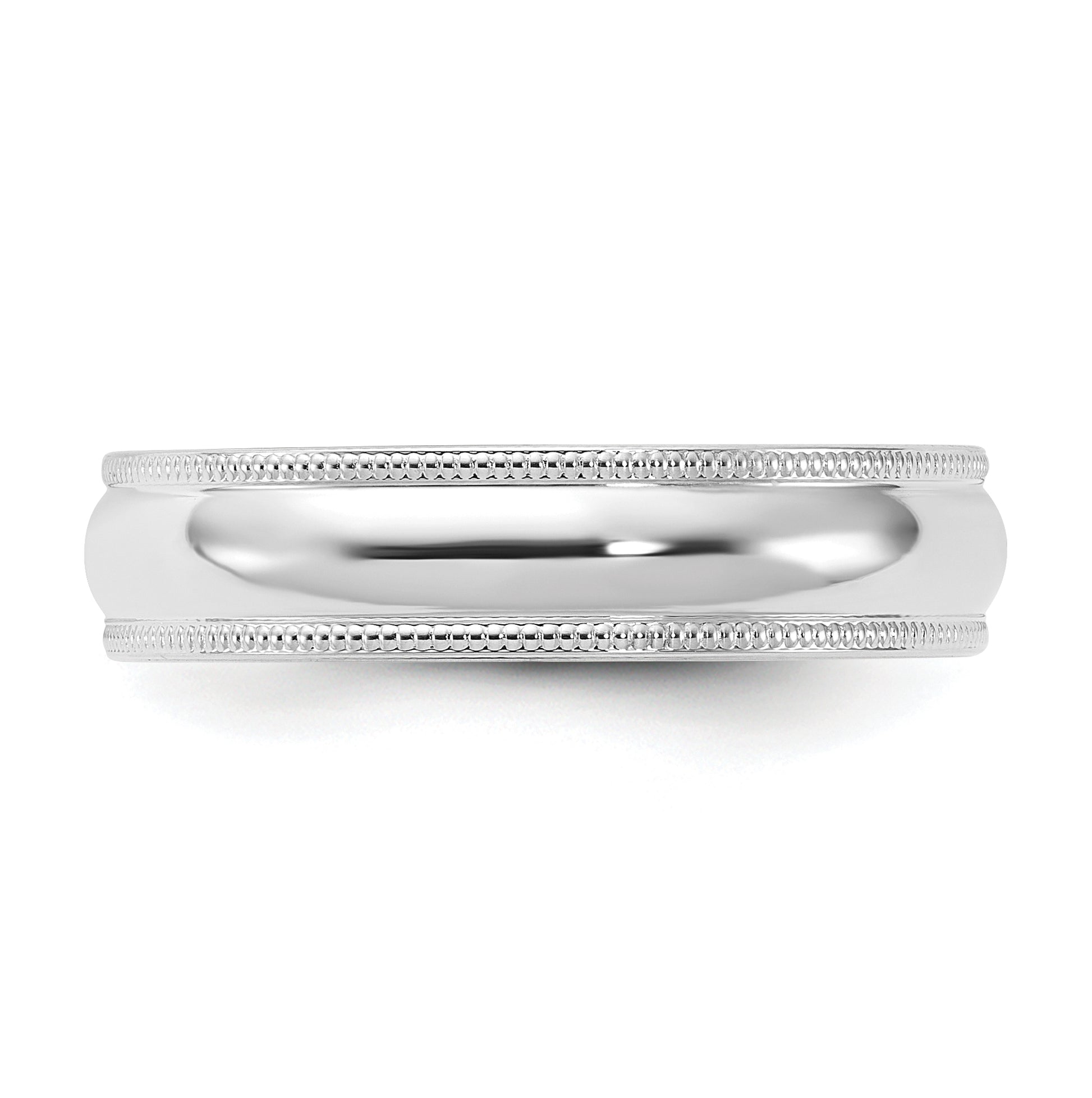 14k White Gold 5mm Milgrain Half Round Comfort Fit Wedding Band Size 4.5