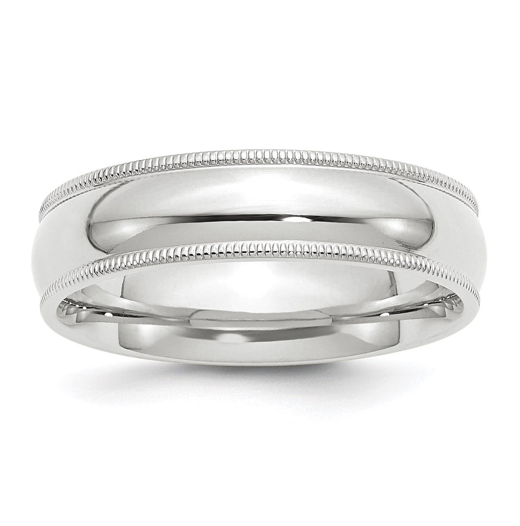 14k White Gold 6mm Milgrain Half Round Comfort Fit Wedding Band Size 4.5