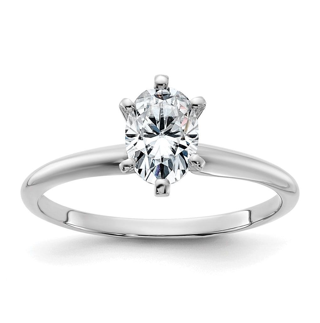14K White Gold 7/8ct. D E F Pure Light Oval Moissanite Solitaire Ring, Size 9